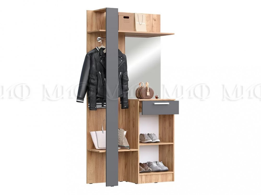 Прихожая-Вешалка комбинированная Мартина Графит, Дуб крафт