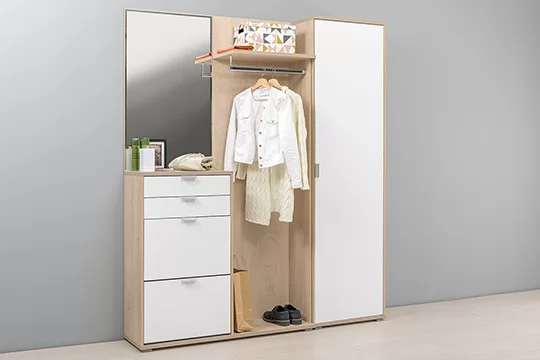 Компактный и необычайно функциональный шкаф многоцелевого назначения Нэкст 10.21 станет практичным дополнением в вашей прихожей. Штанга создана для размещения верхней одежды, а антресольная полка - для головных уборов и разнообразных аксессуаров. Тумба оснащена двумя откидными дверьми со специальными отсеками для бережного хранения обуви. Два выдвижных ящика предоставят место для различных мелочей.