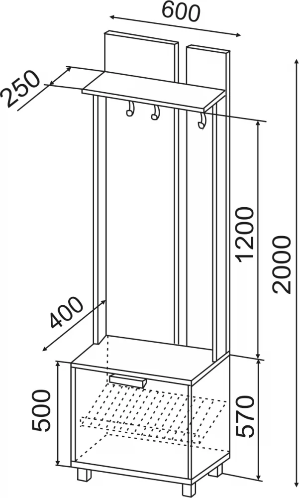 | Размер(ВхШхГ): | 2000 х 600 х 400 мм |