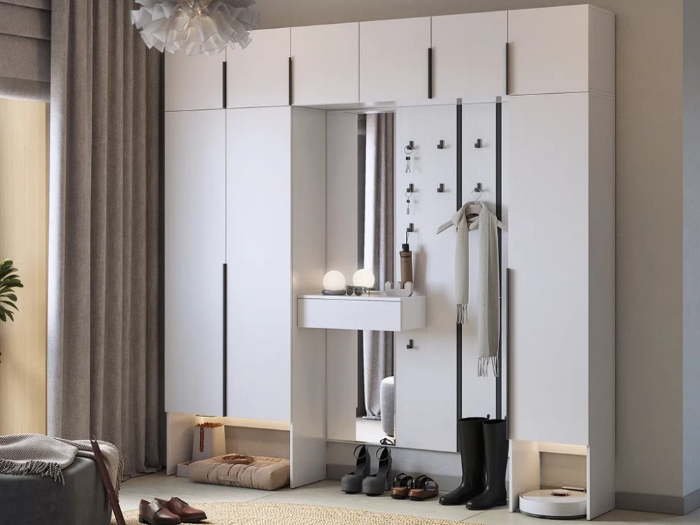 Крючки предоставляют удобное место для хранения сумок или аксессуаров. Выкатной ящик служит дополнительным пространством для хранения мелочей, таких как ключи, кошелек, косметика или другие небольшие предметы.