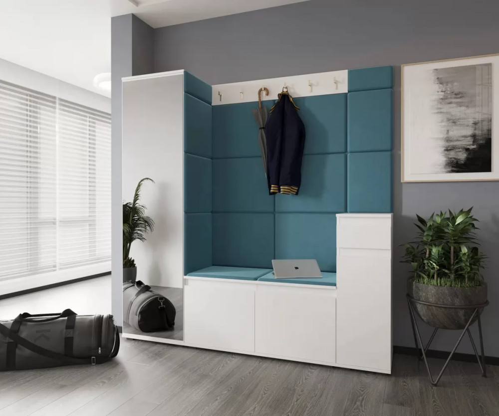 Модульная прихожая Stark 2 Белый матовый/Велюр бирюзовый НК-мебель