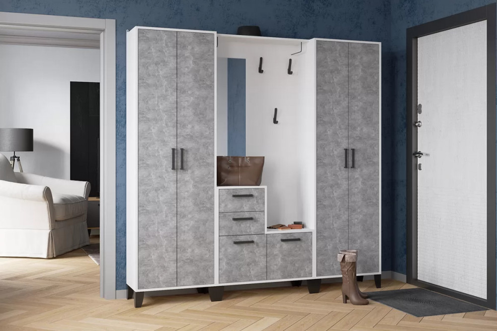 Прихожая МОККО УНИ (ш1200*г375*в2100мм), ЛДСП Дуб крафт серый-Кремовый/ МДФ Кремовый