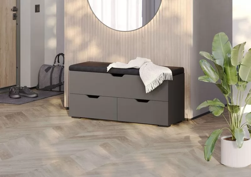 Диван ФЛИНТ (тумба д/обуви) (ш1000*г360*в490мм), ЛДСП Графит - кожзам черный