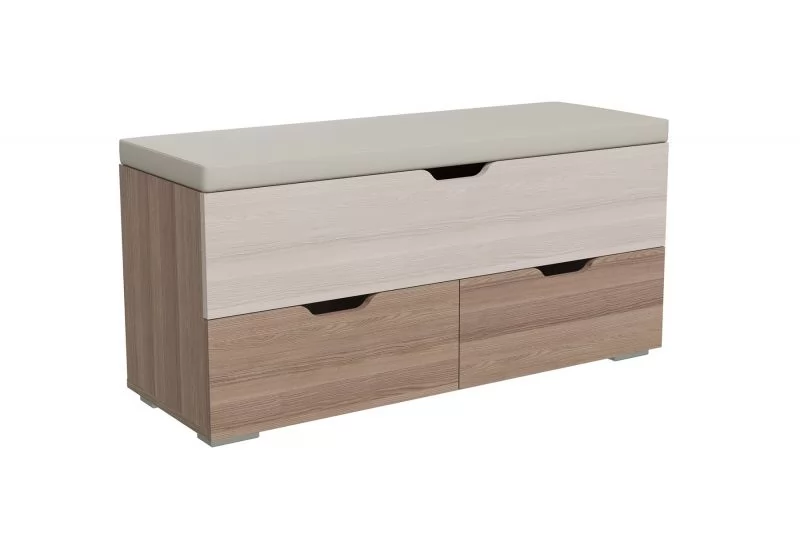 Диван ФЛИНТ (тумба д/обуви) (ш1000*г360*в490мм), ЛДСП Яс шим темн/Яс шим свет-Яс шим темн - к/з беж