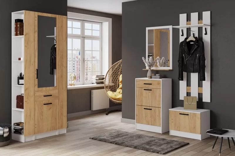 КЕВИН Обувница (ш600*г355*в990мм), Белый /Дуб крафт золотой