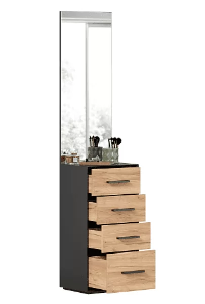 Неаполь ЛД.134080.000 Тумба комбинированная с зеркалом (Черный/Дуб Золотой)