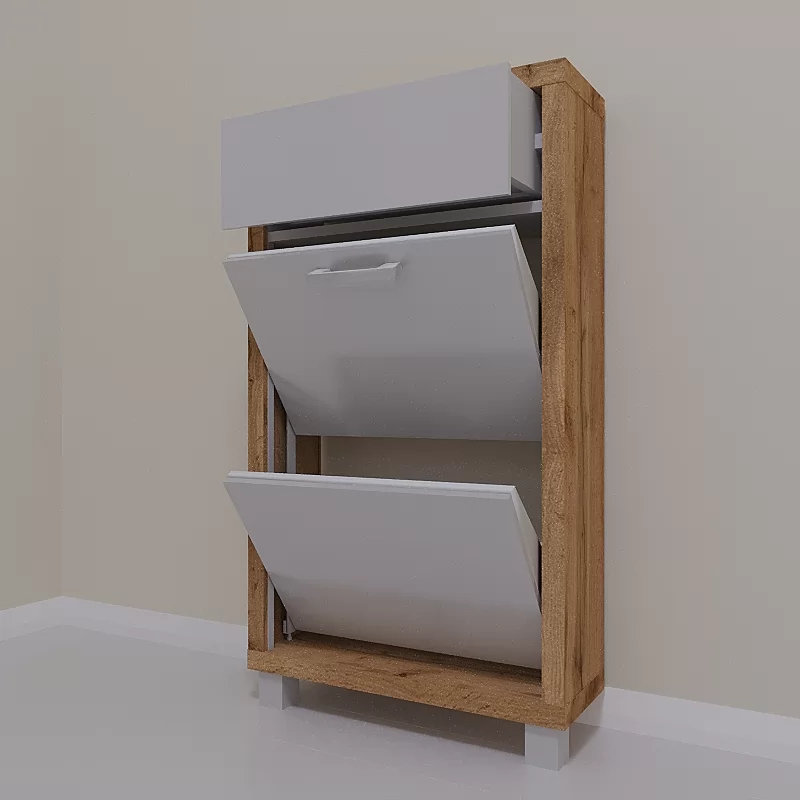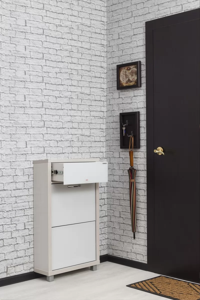 Обувной шкаф с дополнительным выдвижным ящиком для мелочей поможет организовать хранение всех необходимых вещей.