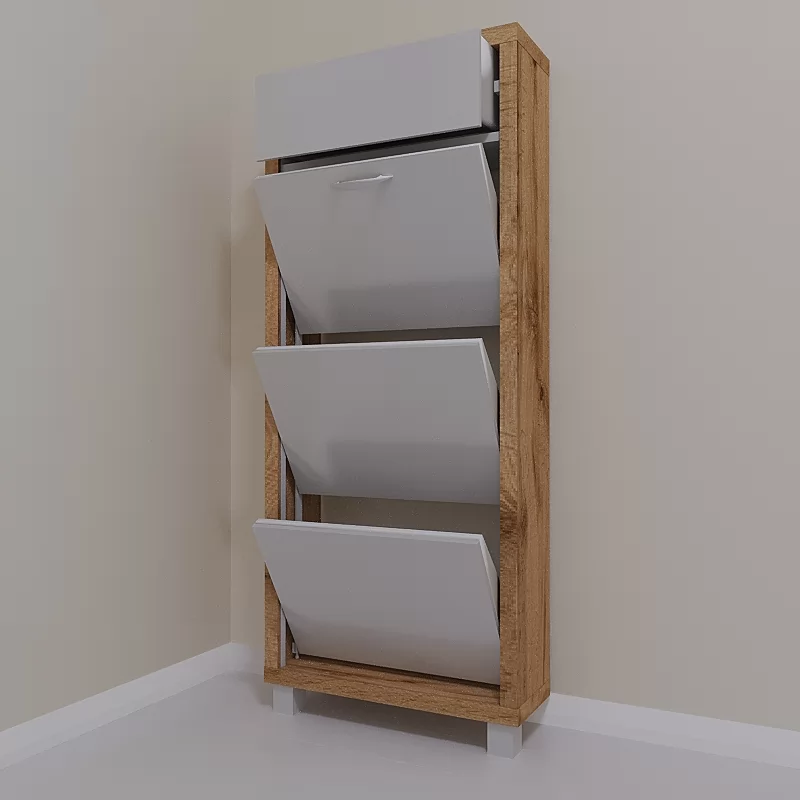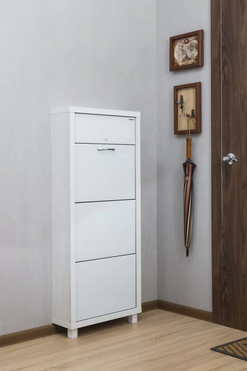 Обувной шкаф с дополнительным выдвижным ящиком для мелочей поможет организовать хранение всех необходимых вещей.
