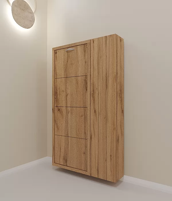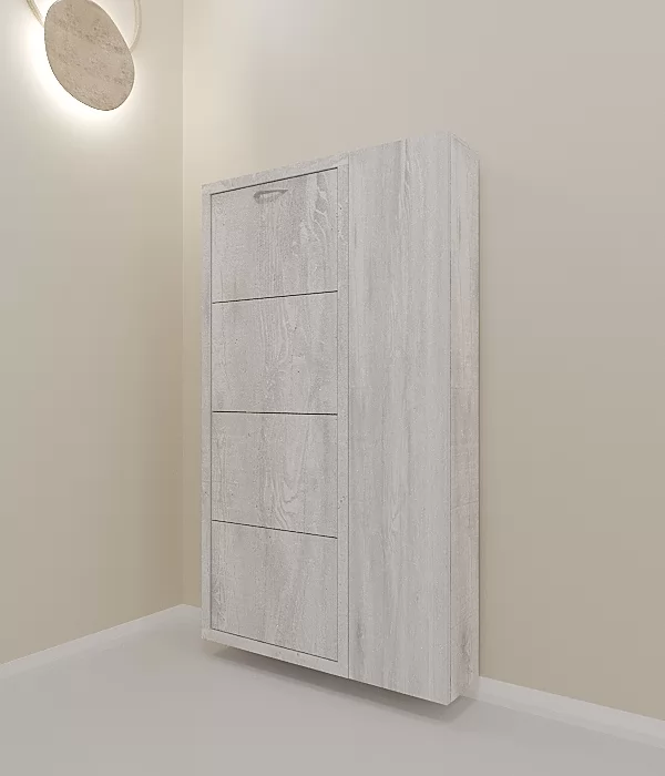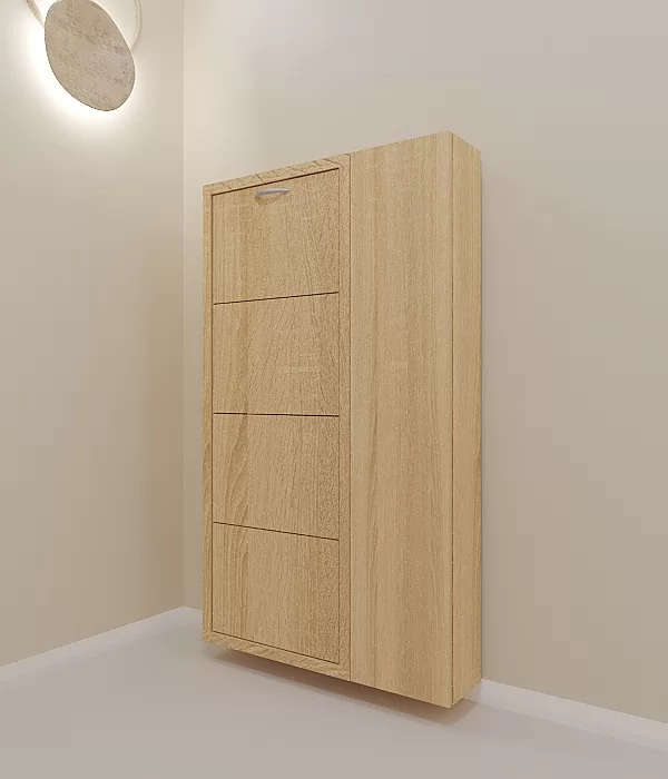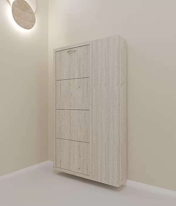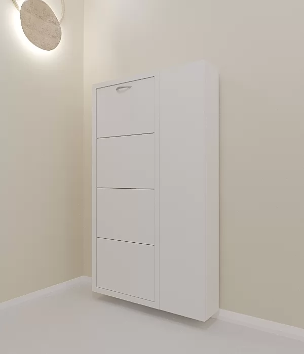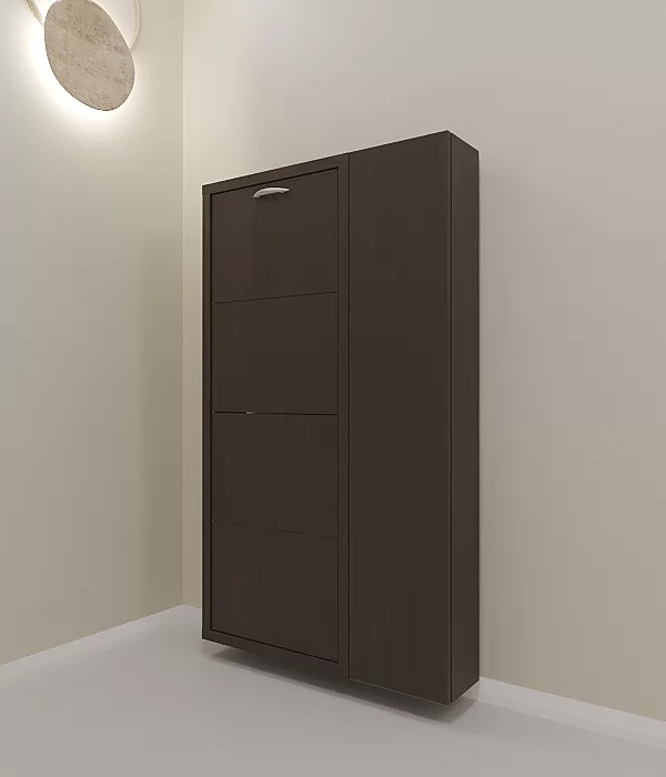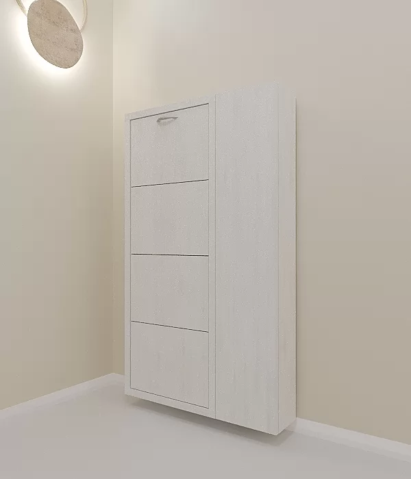 Обувница Люкс Дуэт 4 секции — компактное решение для создания функционального интерьера в небольшой современной прихожей. Производимая нами фурнитура работает по принципу веера, обеспечивая синхронное открытие лотков, и позволит аккуратно хранить всю необходимую обувь.