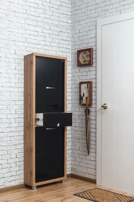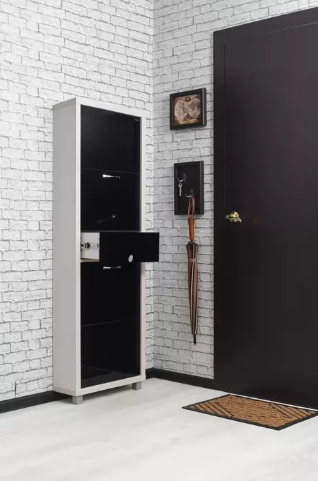 Обувной шкаф с дополнительным выдвижным ящиком для мелочей поможет организовать хранение всех необходимых вещей.