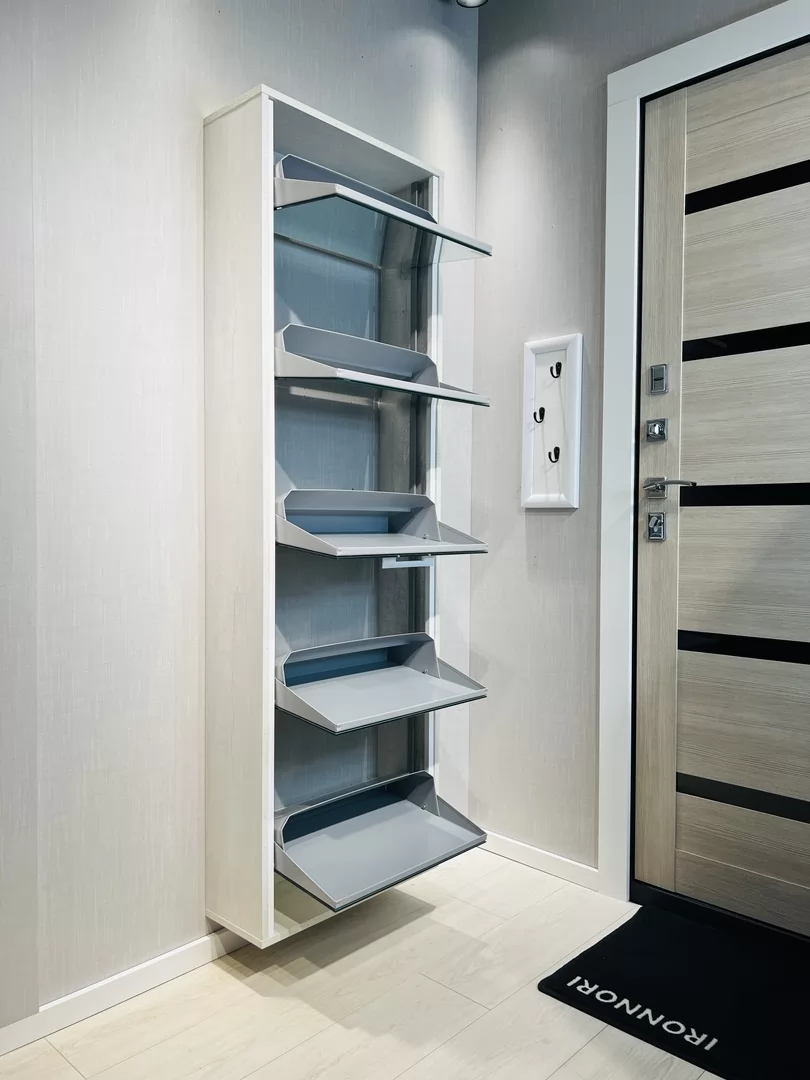 Обувница Лайт 5 секций — компактное решение для создания функционального интерьера в небольшой современной прихожей. Производимая нами фурнитура работает по принципу веера, обеспечивая синхронное открытие лотков, и позволит аккуратно хранить всю необходимую обувь.