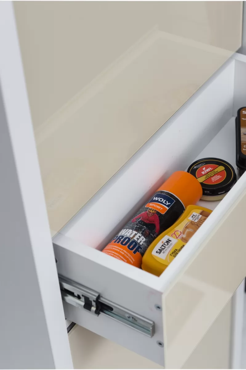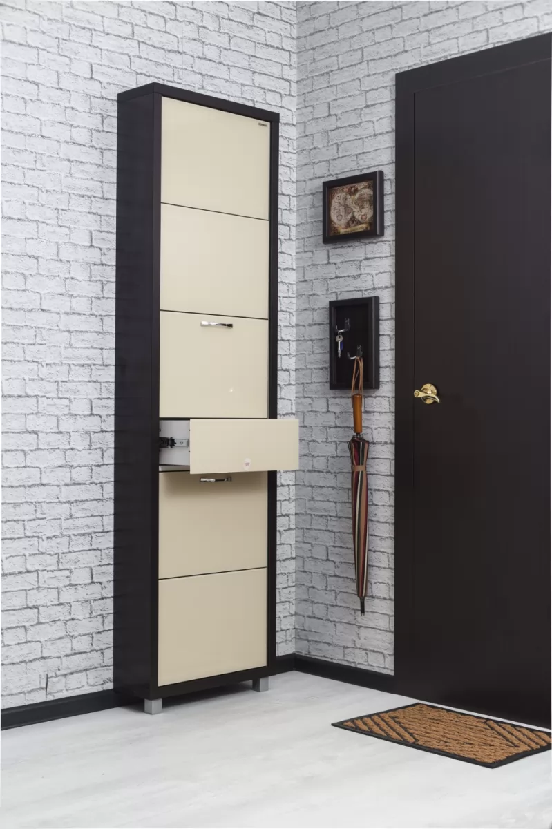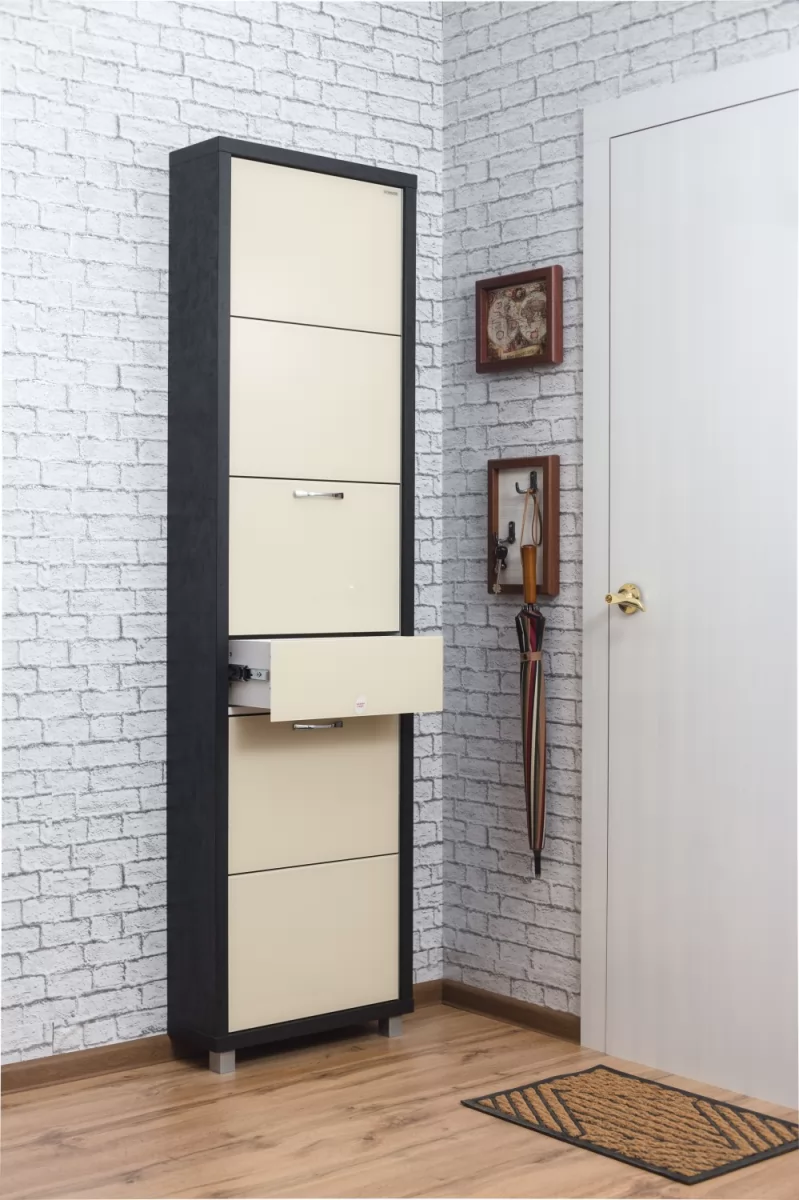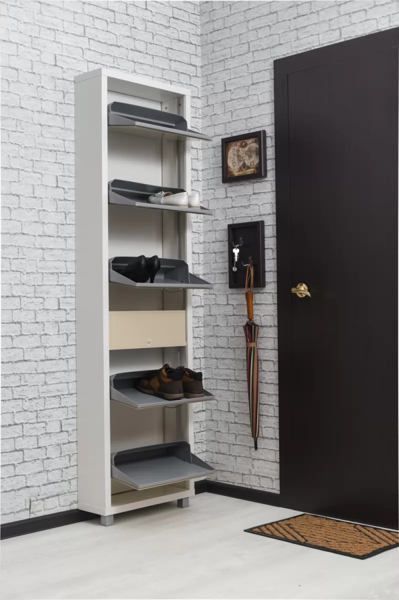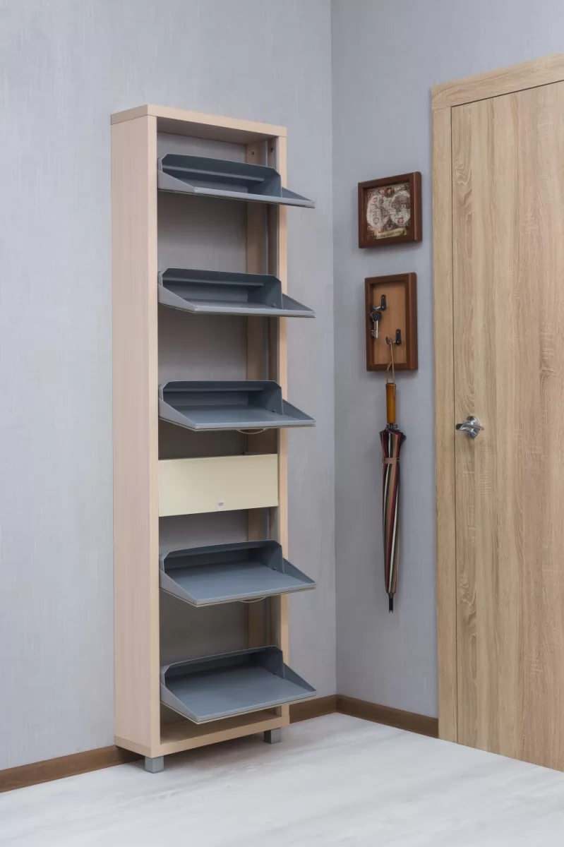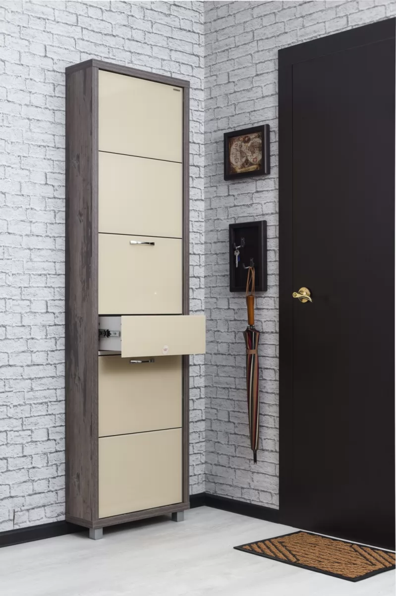 Обувной шкаф с дополнительным выдвижным ящиком для мелочей поможет организовать хранение всех необходимых вещей.