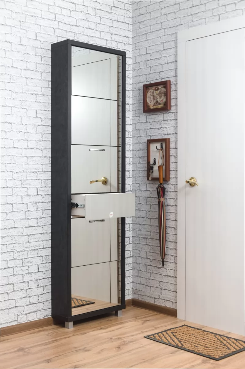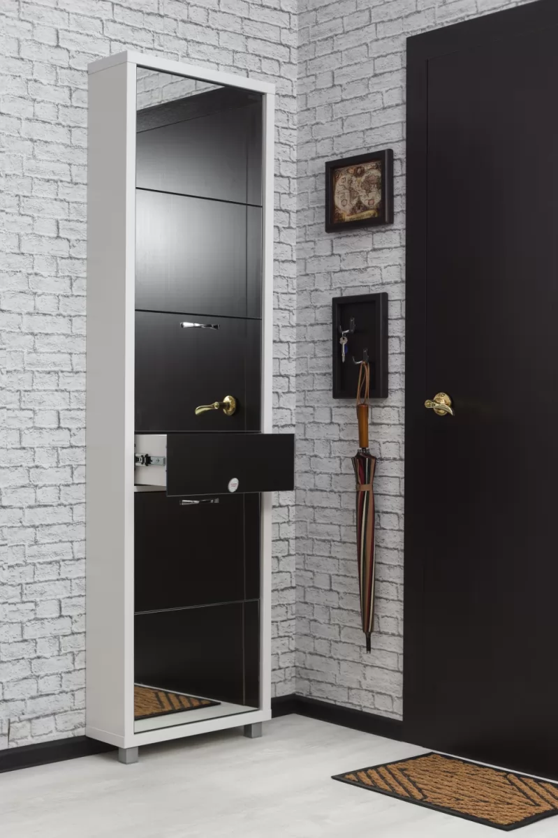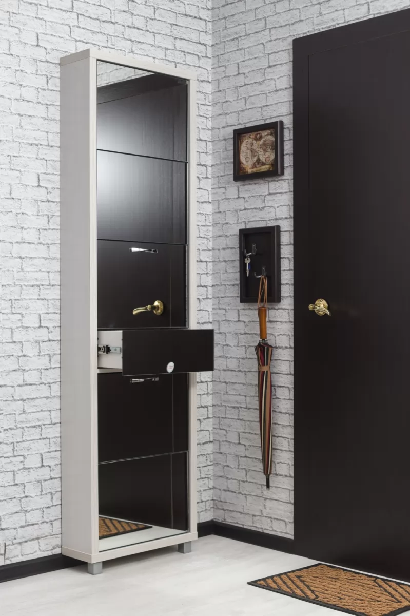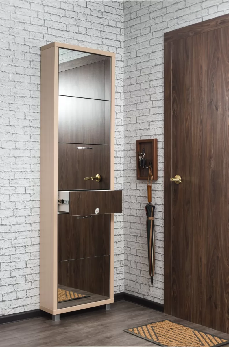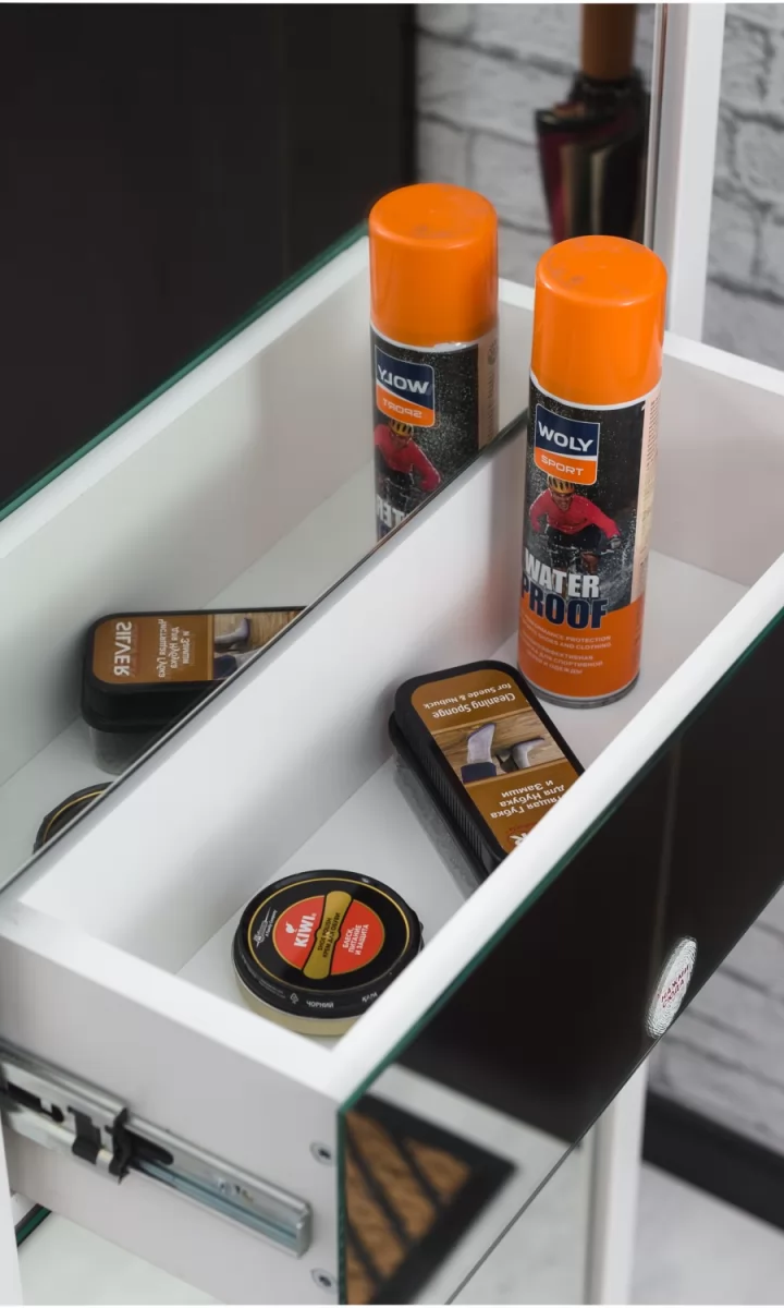Обувной шкаф с дополнительным выдвижным ящиком для мелочей поможет организовать хранение всех необходимых вещей.