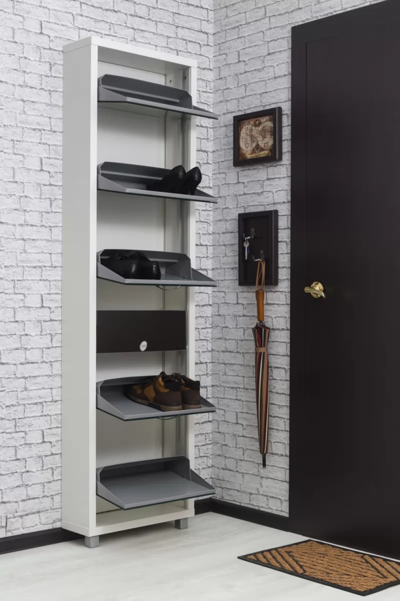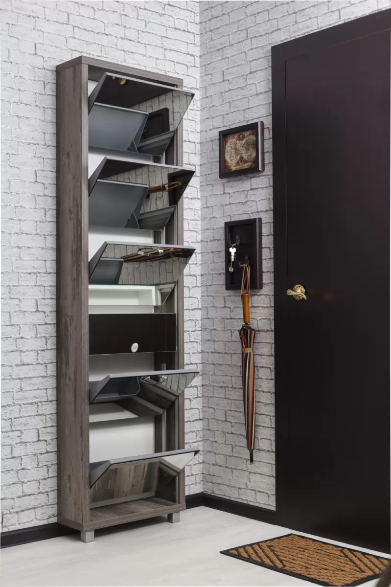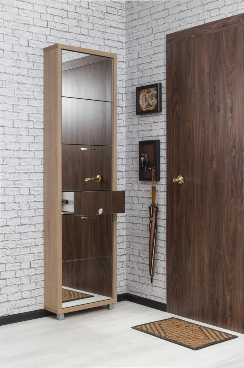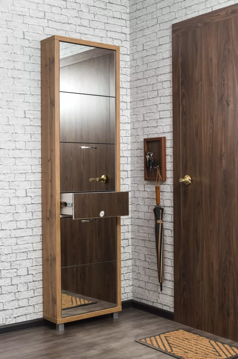 Обувной шкаф с дополнительным выдвижным ящиком для мелочей поможет организовать хранение всех необходимых вещей.