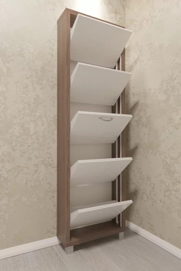 Обувница Люкс 5 секций— компактное решение для создания функционального интерьера в небольшой современной прихожей.
