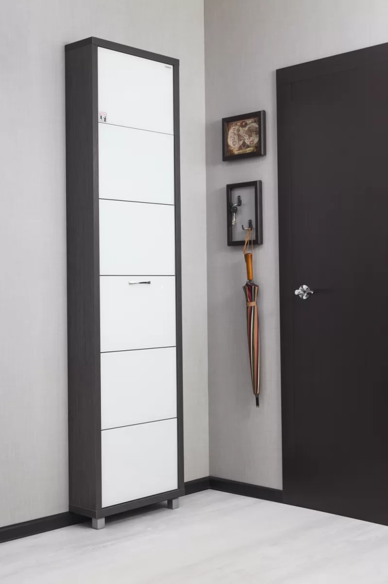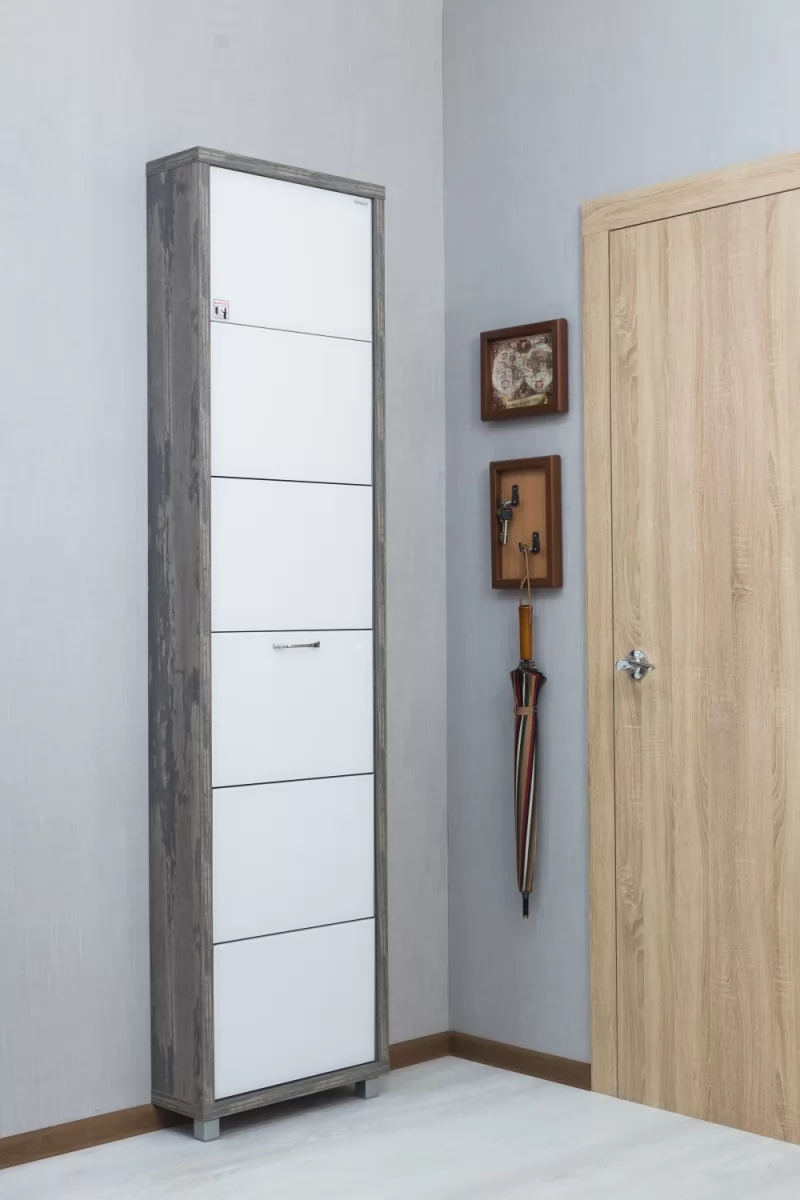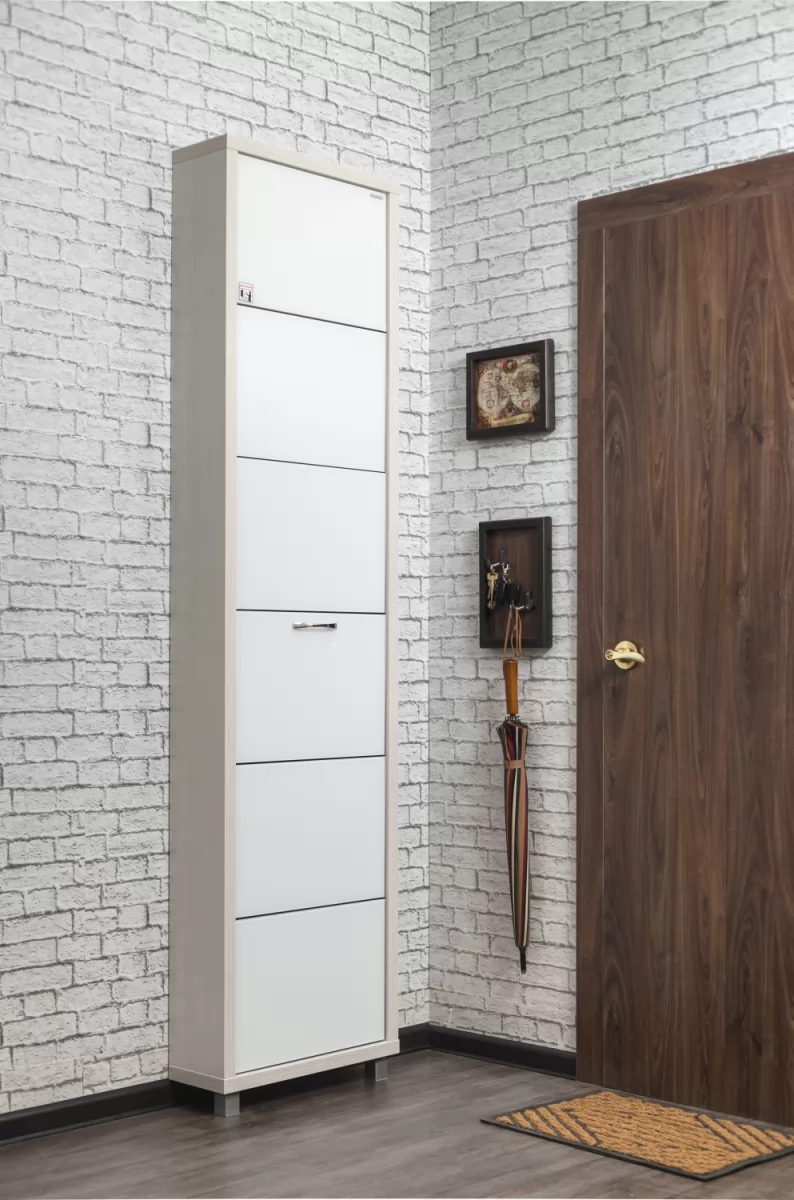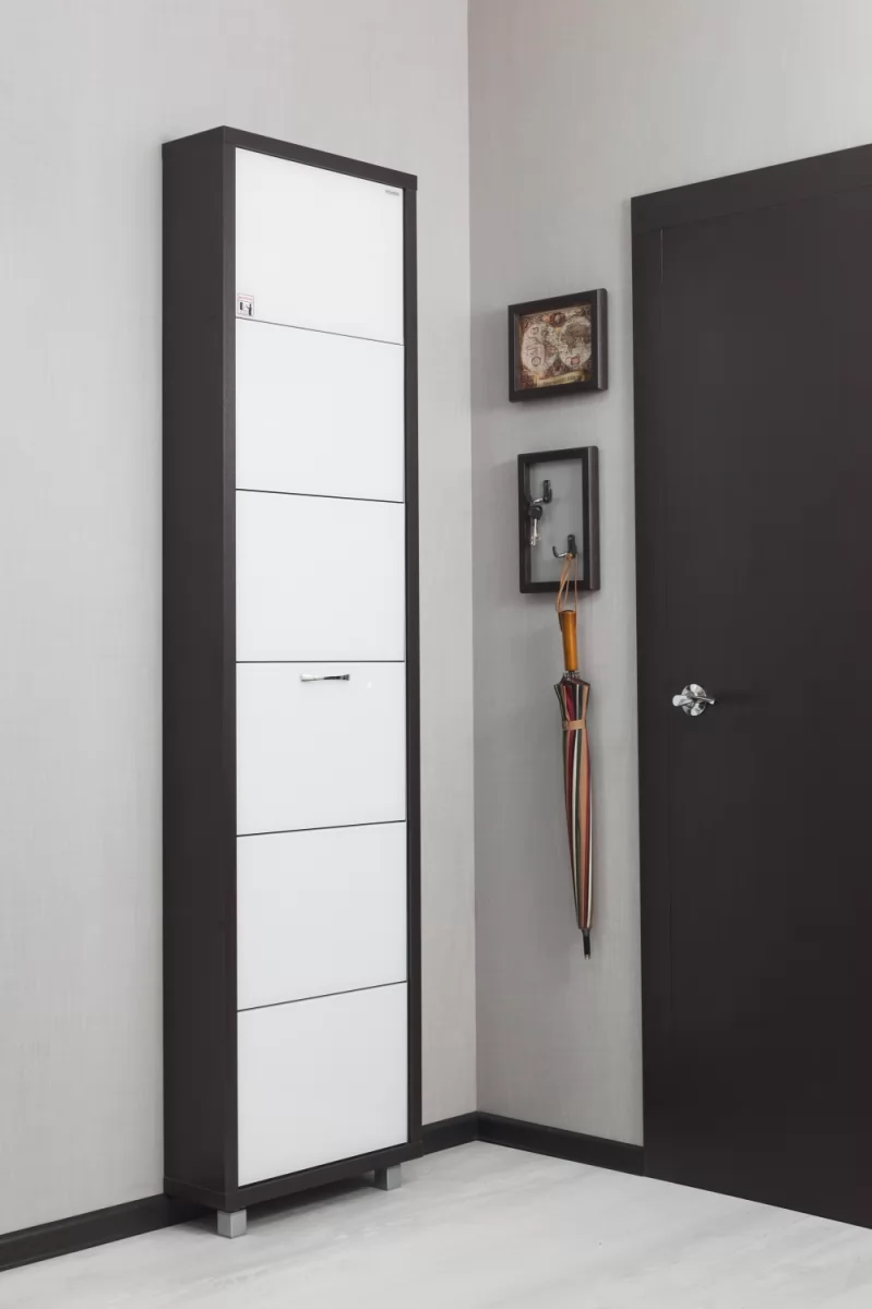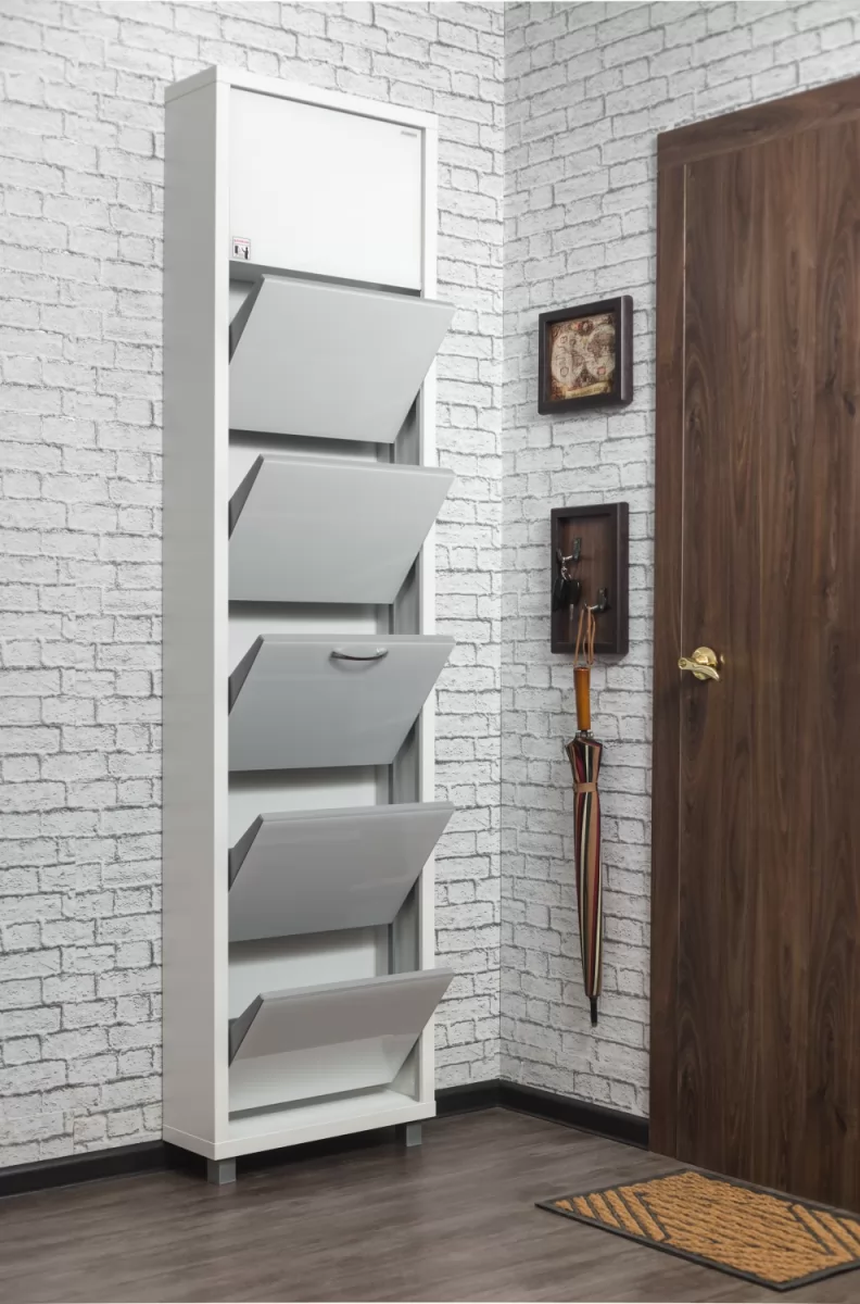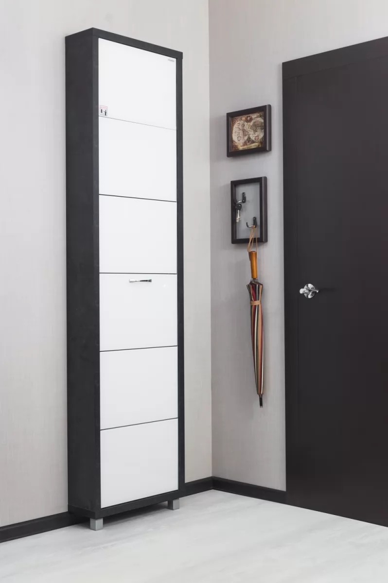 Обувной шкаф с дополнительным большим откидным ящиком для мелочей поможет организовать хранение всех необходимых вещей.