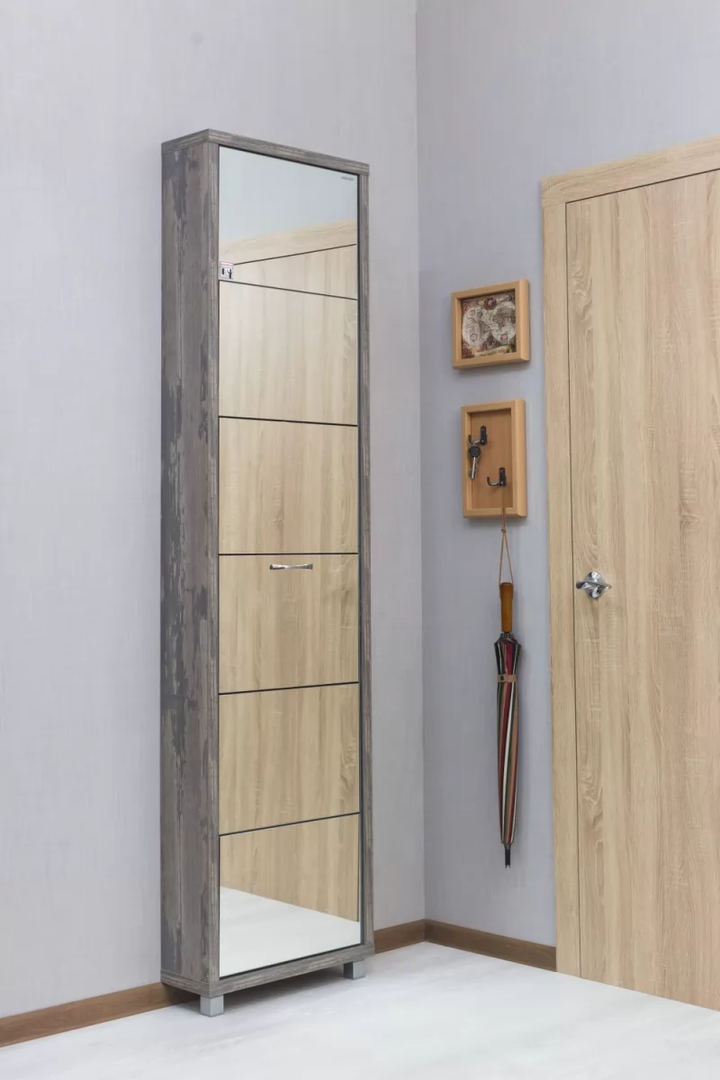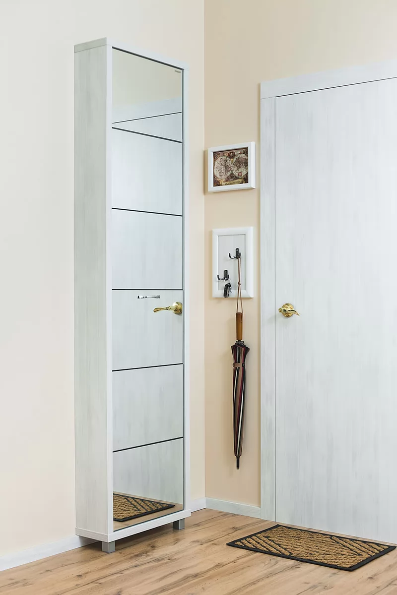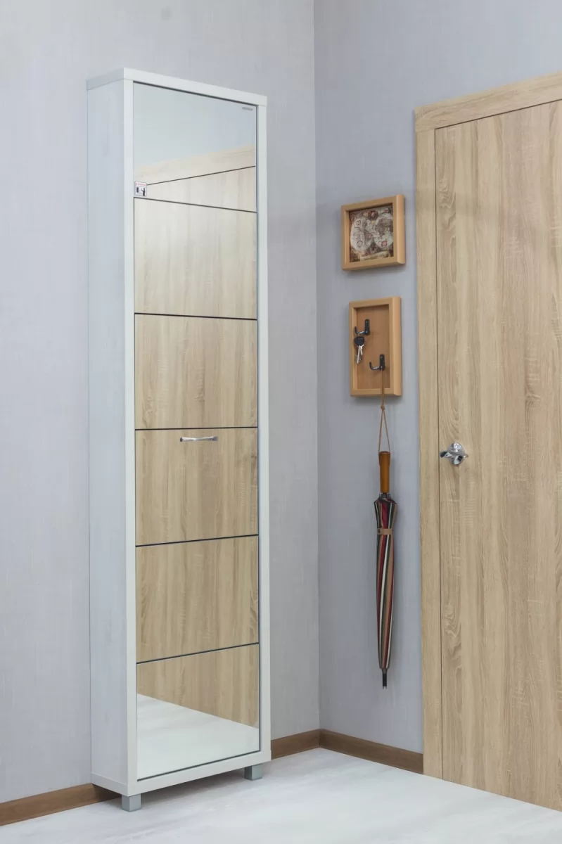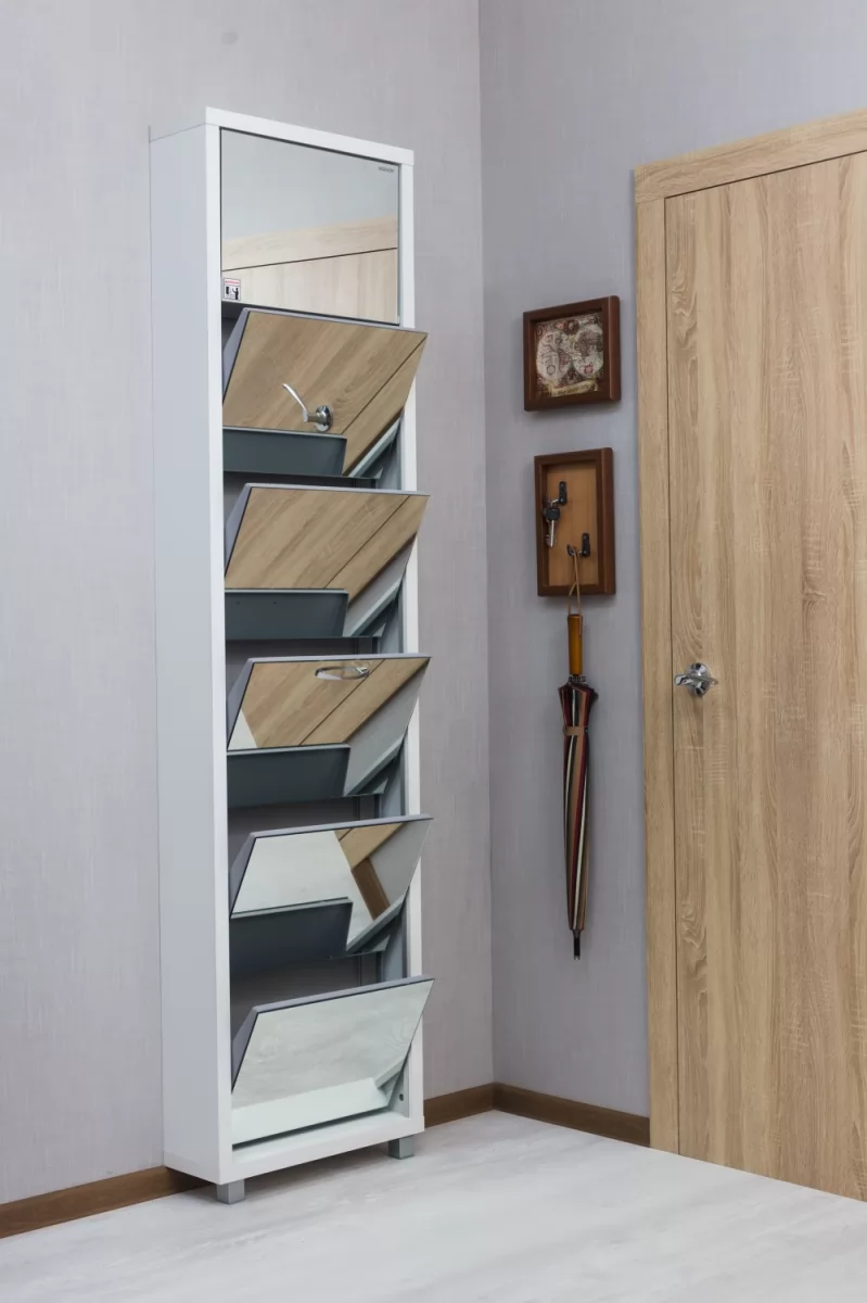Обувной шкаф с дополнительным большим откидным ящиком для мелочей поможет организовать хранение всех необходимых вещей.