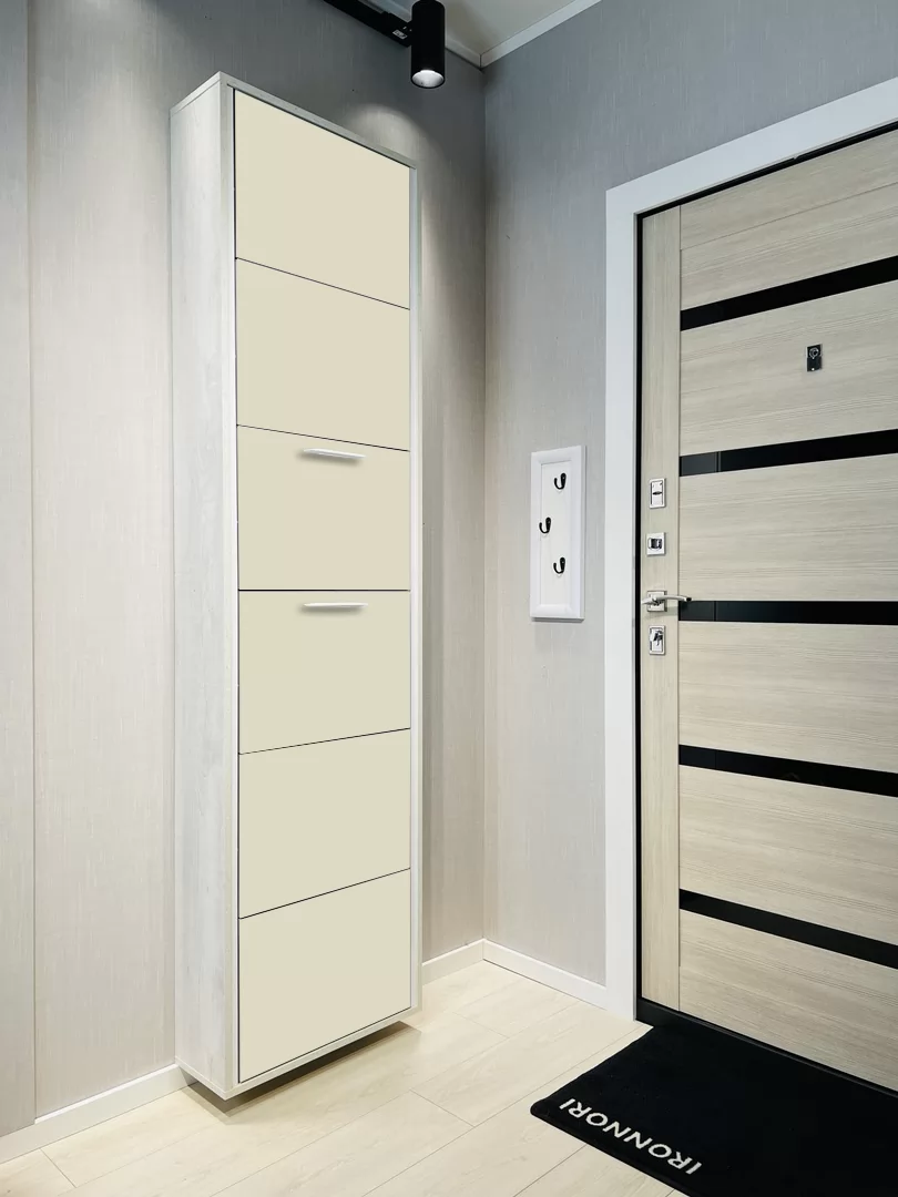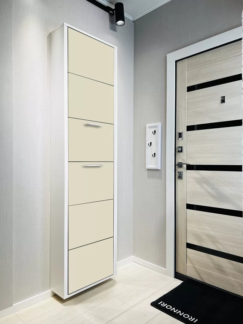 Обувница Лайт 6 секции — компактное решение для создания функционального интерьера в небольшой современной прихожей. Производимая нами фурнитура работает по принципу веера, обеспечивая синхронное открытие лотков, и позволит аккуратно хранить всю необходимую обувь.