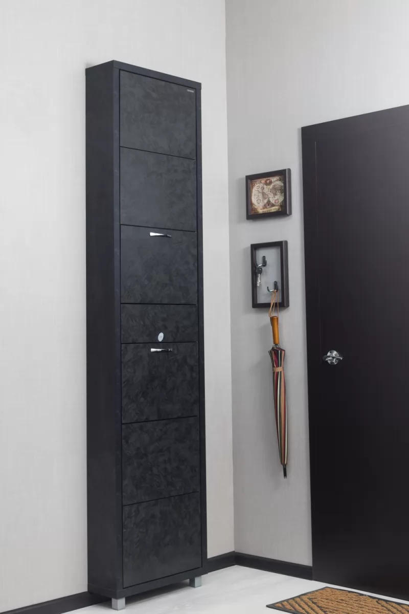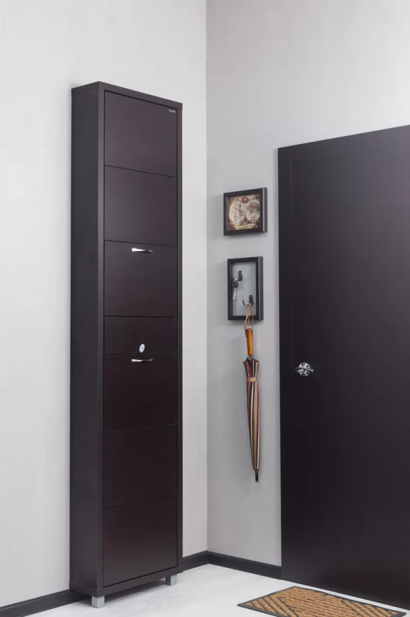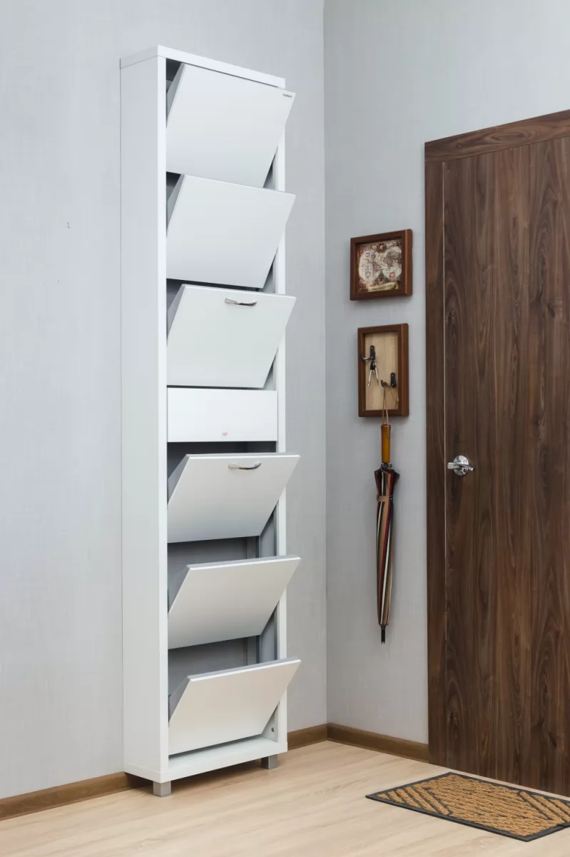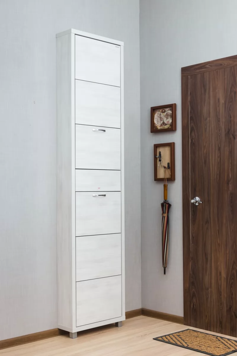 Обувной шкаф с дополнительным выдвижным ящиком для мелочей поможет организовать хранение всех необходимых вещей.