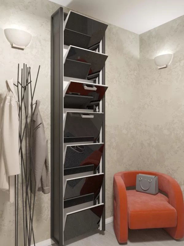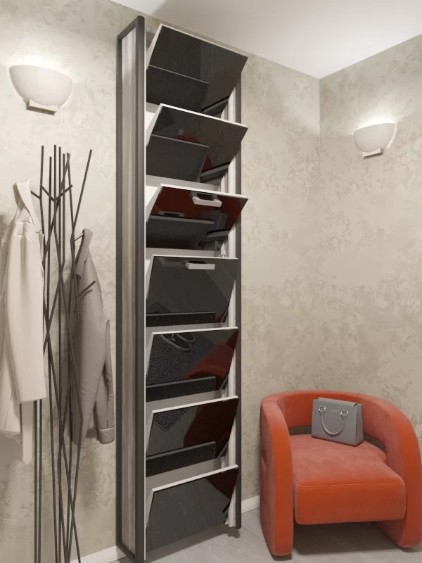 Производимая нами фурнитура работает по принципу веера, обеспечивая синхронное открытие лотков, и позволит аккуратно хранить всю необходимую обувь.