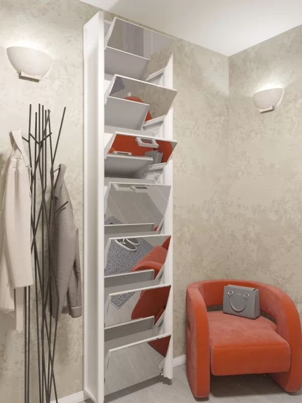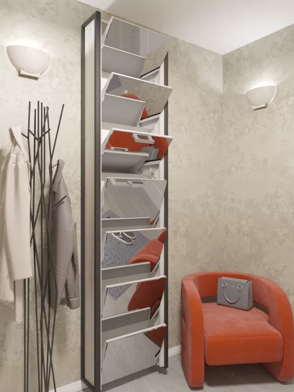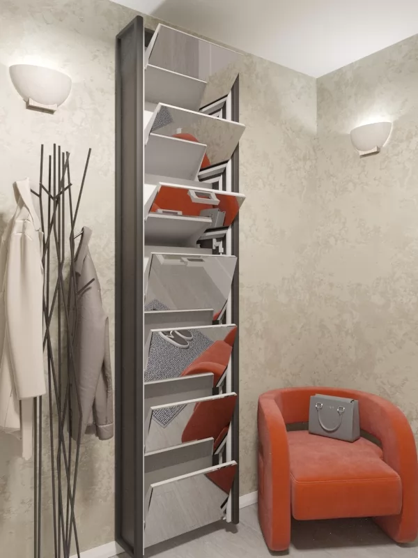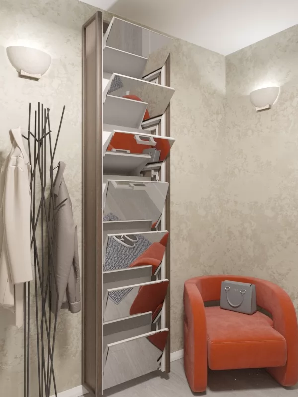 Производимая нами фурнитура работает по принципу веера, обеспечивая синхронное открытие лотков, и позволит аккуратно хранить всю необходимую обувь.