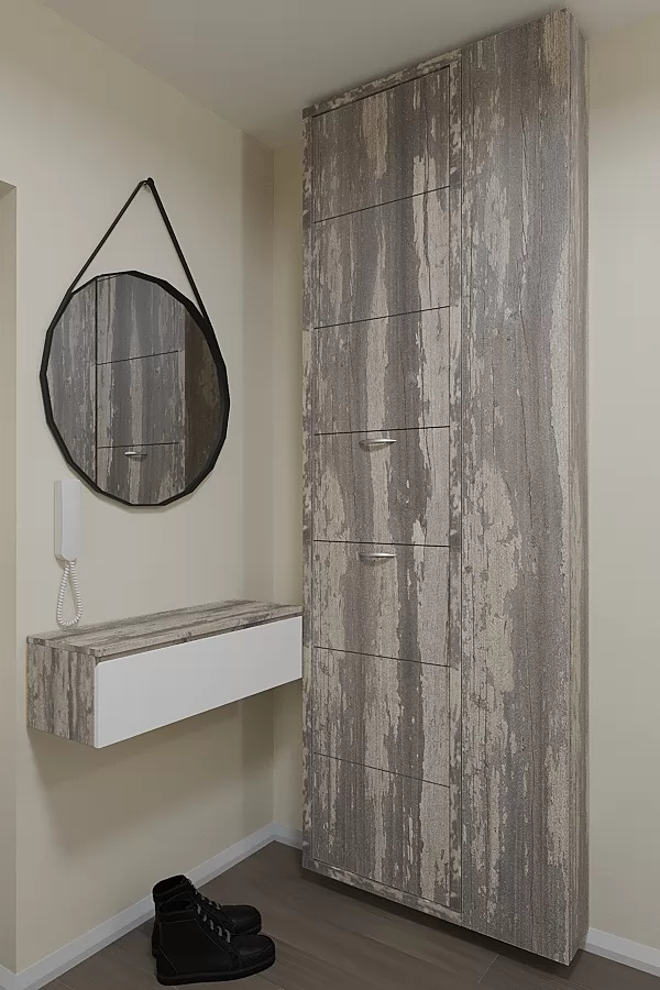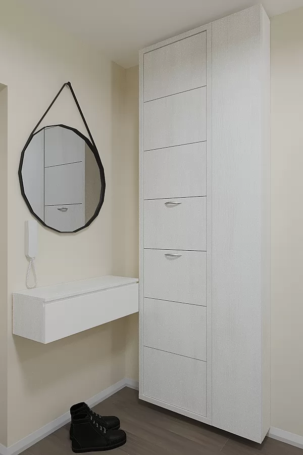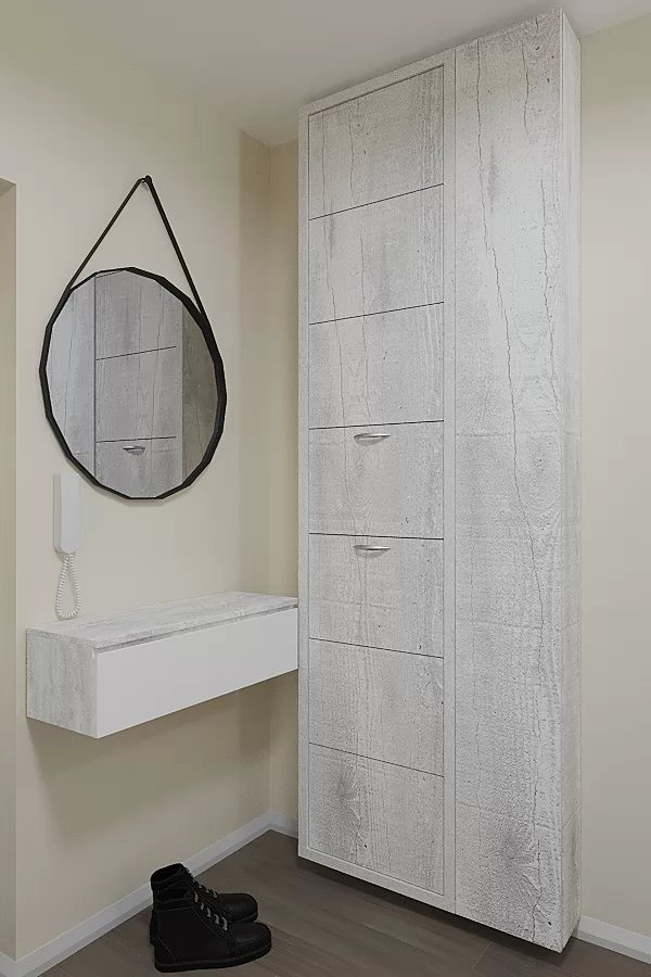 Габаритные Размеры: 83*19*257,7 см, Стандартная комплектация фурнитуры, Ручка серая матовая, Вид поставки: обувница собранная, пенал разобранный;