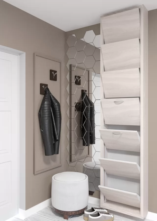 Обратите внимание! Обувница крепится к стене с опорой на пол (крепления и опоры входят в комплект). Модель доступна для подвешивания.