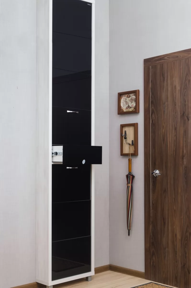 Обувной шкаф с дополнительным выдвижным ящиком для мелочей поможет организовать хранение всех необходимых вещей.