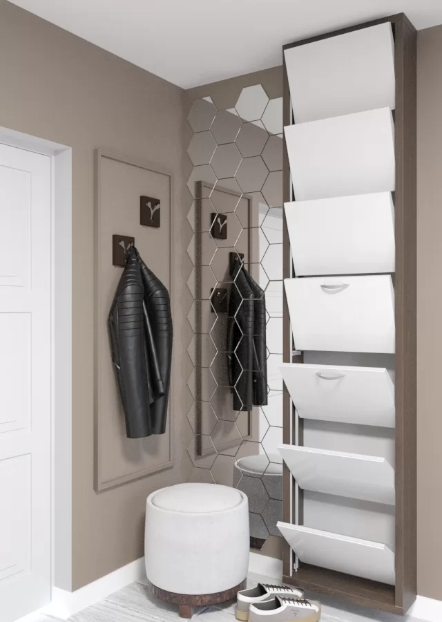 Обратите внимание! Обувница крепится к стене с опорой на пол (крепления и опоры входят в комплект). Модель доступна для подвешивания.