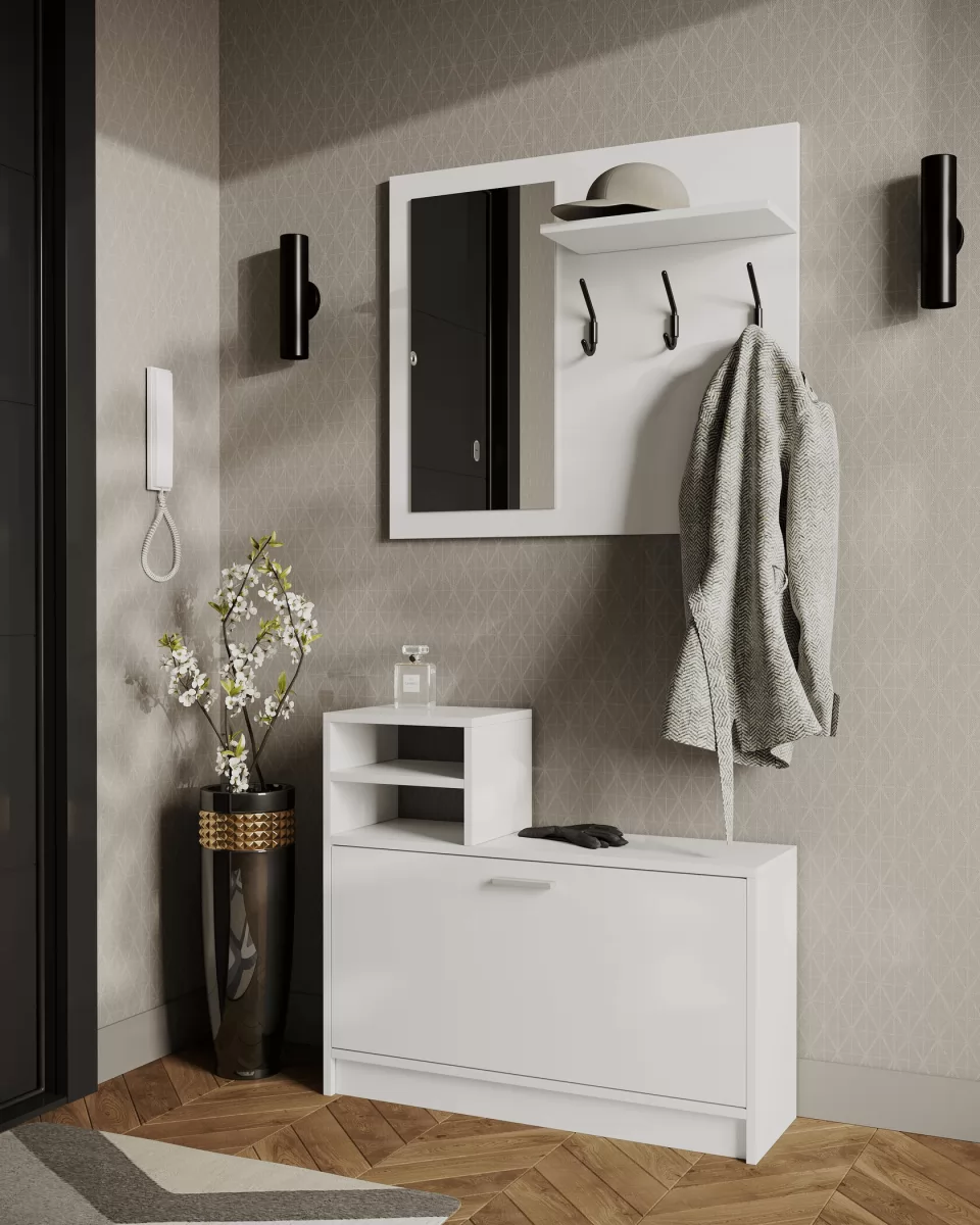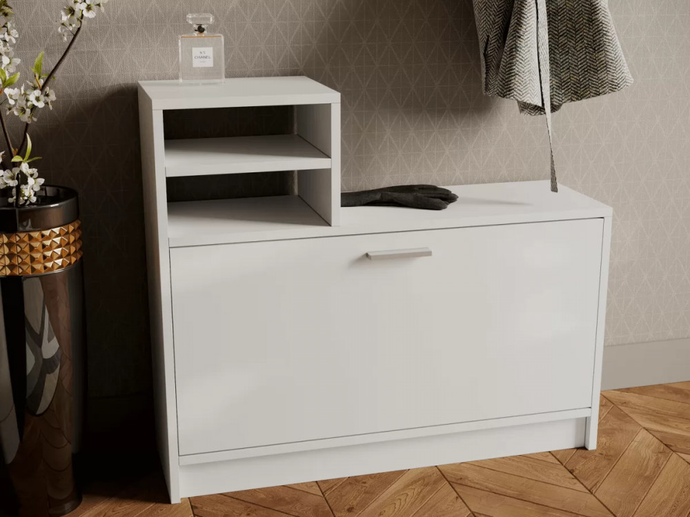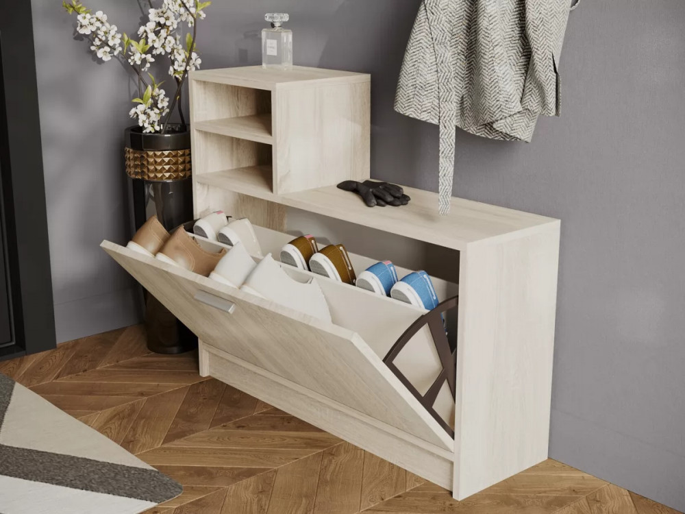 Обувница "Дженни-1" поможет грамотно организовать пространство прихожей. В открытой нише и на столешнице удобно хранить то, что часто нужно под рукой.