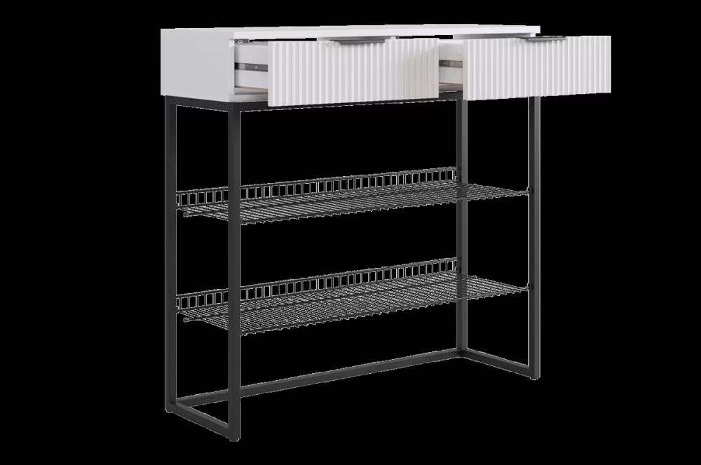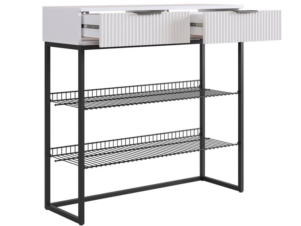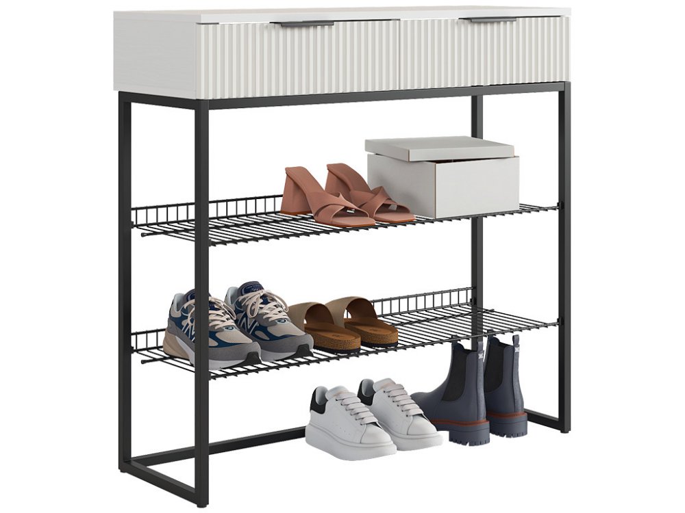Обувница Классная 1 белое дерево/белый матовый/черный муар