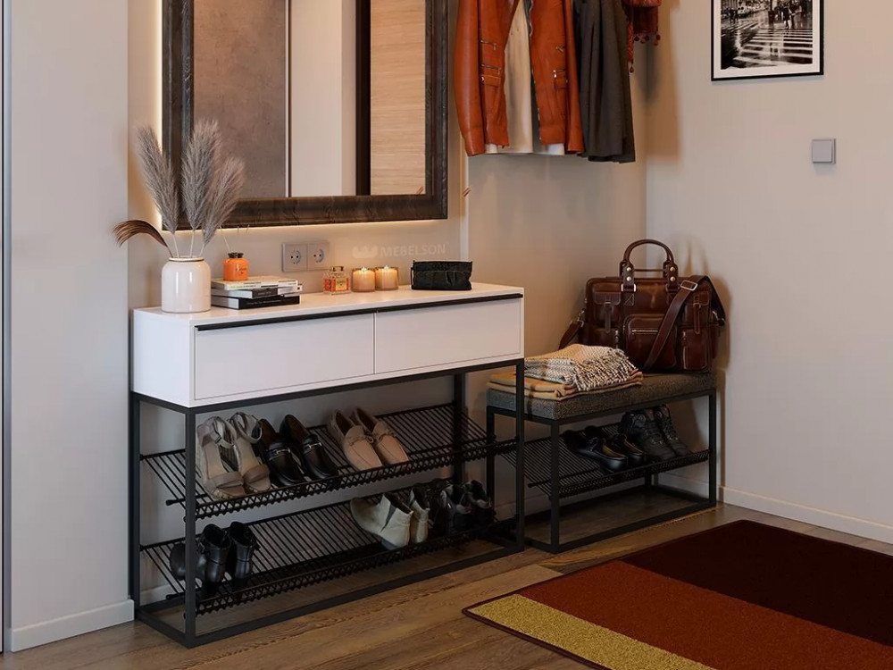 Стильная и модная консоль для обуви в стиле Лофт из алюминевого профиля. Изделие не разборное, Одноразовая сборка алюминевой конструкции.