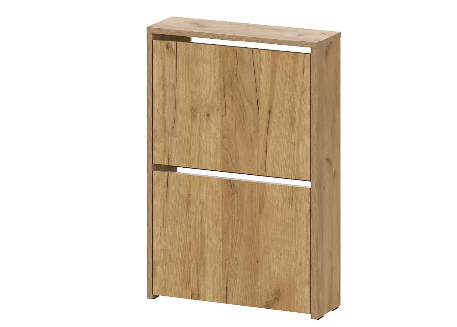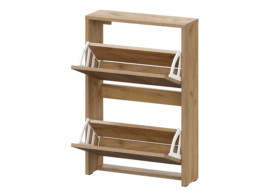 Обувница «ОБ 3» оборудована двумя откидными полками, куда легко поместятся несколько пар обуви, а сверху можно положить ключи или телефон. Задняя стенка отсутствует.