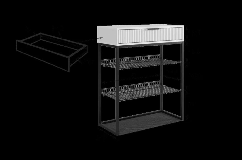 Обувница Вельвет прекрасно сочетает в себе стиль и функциональность. Её дизайн в стиле лофт идеально подходит для современных интерьеров. Выдвижной ящик с шариковыми направляющими обеспечивает бесшумное и плавное открывание, предоставляя удобный доступ к вашим аксессуарам и мелочам. Регулируемые опоры и специальный коврик обеспечивают дополнительный комфорт и защиту.