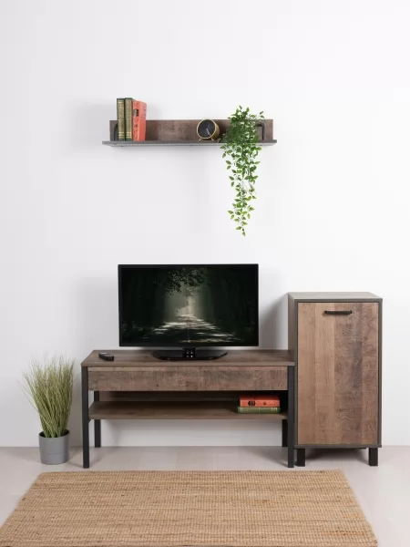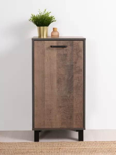Шкаф-тумба Стронг 13.208 в стиле лофт для хранения вещей идеально впишется в гостиную, спальню, детскую и прихожую. Тумба на ножках универсальна и собирается на обе стороны. За распашной дверцей шкафа-тумбы в гостиную скрывается вместительное отделение с двумя полками. Разместите на них всё, что захотите: постельное белье, обувь, книги. Комод на регулируемых ножках высотой 10 см можно установить так, чтобы скомпенсировать неровности пола. Чёрная матовая металлическая ручка гармонирует с текстурой и расцветкой под тёмный колониальный дуб. Оцените, как тумба сочетается с комодами (Стронг 13.310.01, Стронг 13.310.02), стеллажом (Стронг 13.346), полкой (Стронг 15.65) и тумбами (Стронг 13.242, Стронг 13.243, Стронг 13.263, Стронг 13.268) из линейки Стронг. Соберите комплект мебели в едином стиле.