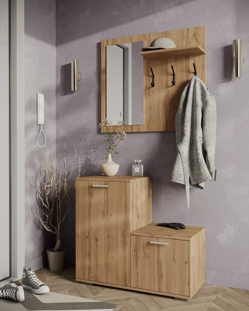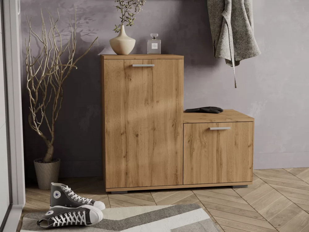 Обувница "Дженни-2" поможет грамотно организовать пространство прихожей. В открытой нише и на столешнице удобно хранить то, что часто нужно под рукой.