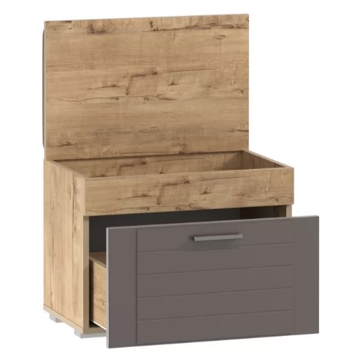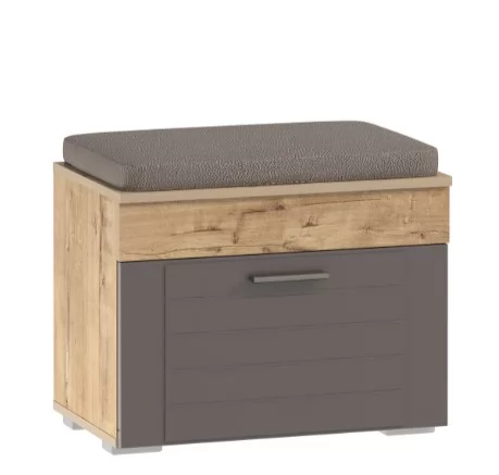 Компактная тумба Livorno НМ 040.63 совмещает в себе функции обувницы и банкетки. Модуль оснащен выдвижным ящиком для размещения в нем повседневной уличной обуви. Под откидной крышкой тумбы скрывается отсек для мелочей. В состав модуля также входит мягкий элемент, который делает процесс сборов комфортным.
