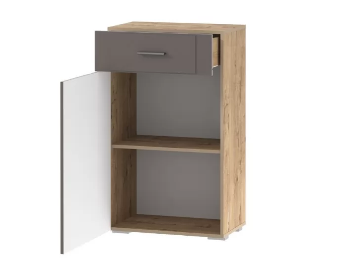 Тумба Livorno НМ 040.65 поможет в организации систематизированного хранения обуви в прихожей. Пространство за распашной дверью разделено на две секции посредством полки. Такая конструктивная особенность позволяет аккуратно расставить большое количество обуви внутри тумбы и избежать беспорядка при хранении. Модуль также оборудован выдвижным ящиком для ключей/кошельков/документов, которые должны быть в быстром доступе при сборах.