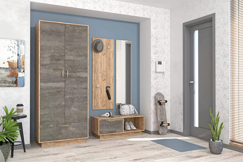 Прихожая Эго, набор №КТ-1, дуб крафт золотой/камень темный Диал