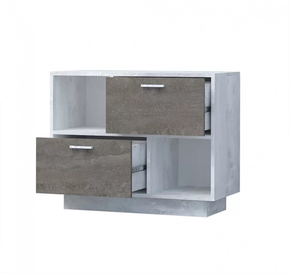 ЭГО К-1 Комод с 2мя ящиками бетон светлый/камень темный Диал на цоколе