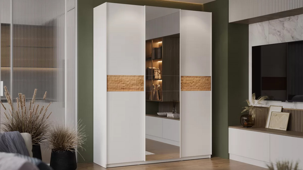 Шкаф-купе с 3 глухими дверями «Оскар Скания» Ручка белая, Белый снег, Дуб тортугга