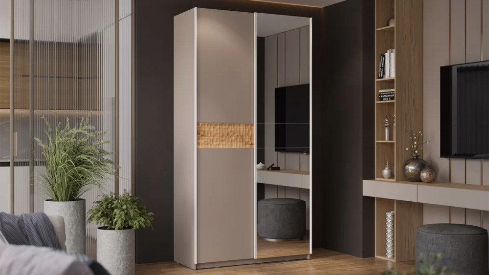 Шкаф-купе с 2 глухими дверями «Оскар Скания» Ручка белая, Кашемир, Дуб тортугга