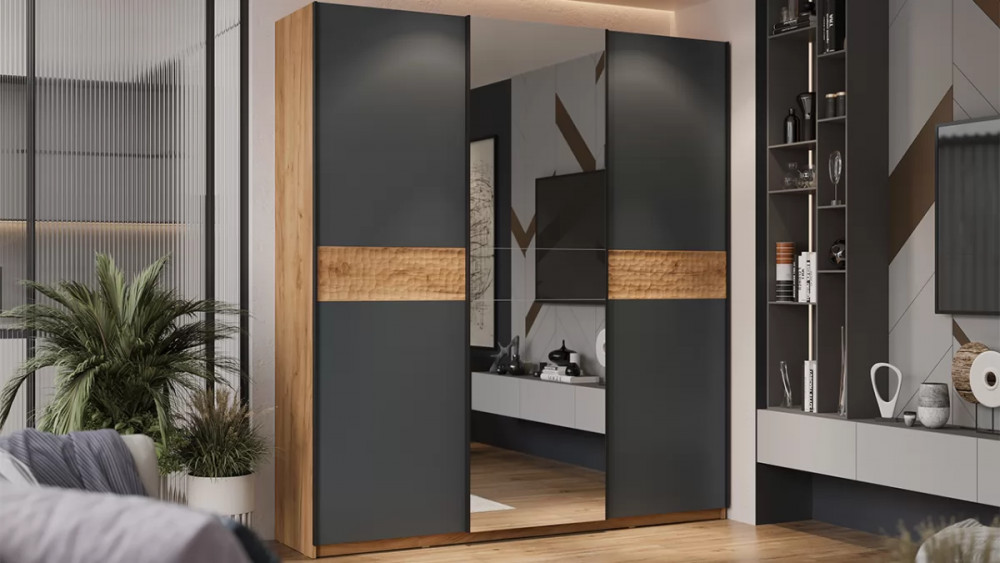 Шкаф-купе Джонни (Фасад тройной Зеркало + Фасад тройной ЛДСП)
