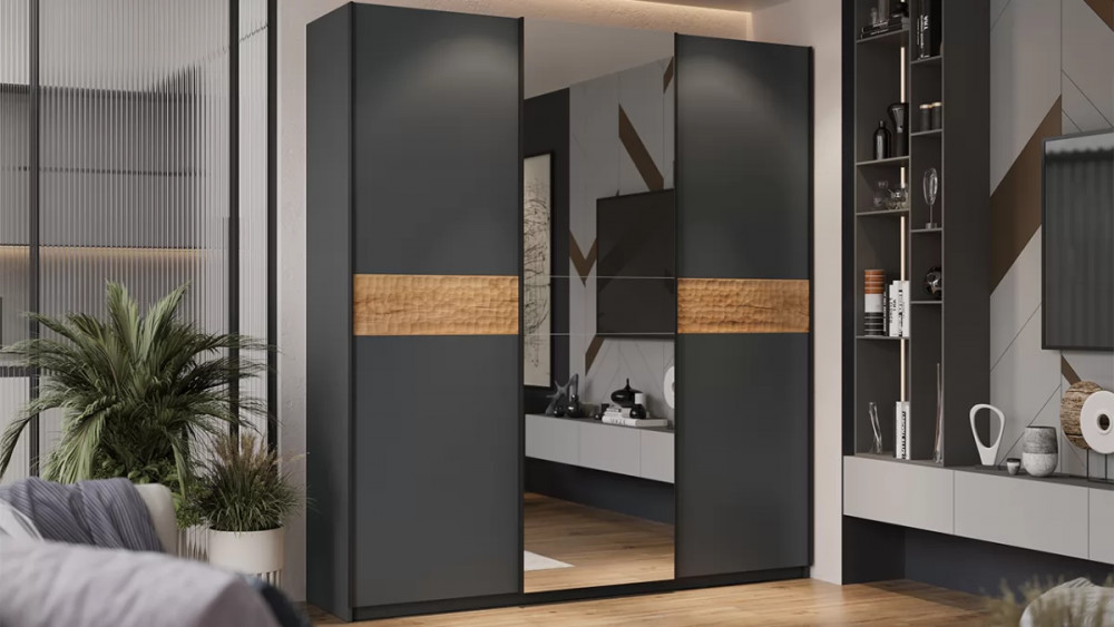 Серия шкафов-купе «Оскар Скания» Ручка черная, Серый графит, Дуб тортугга