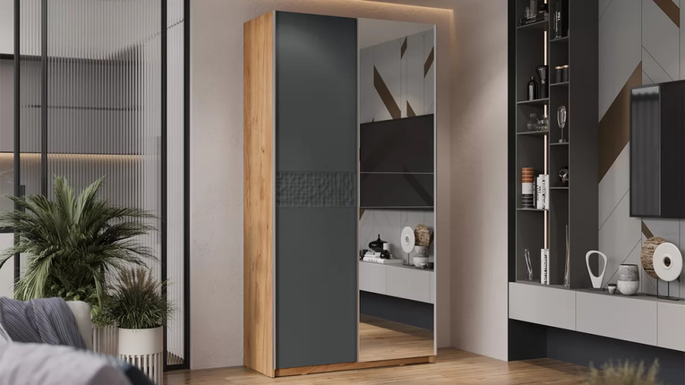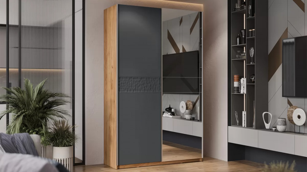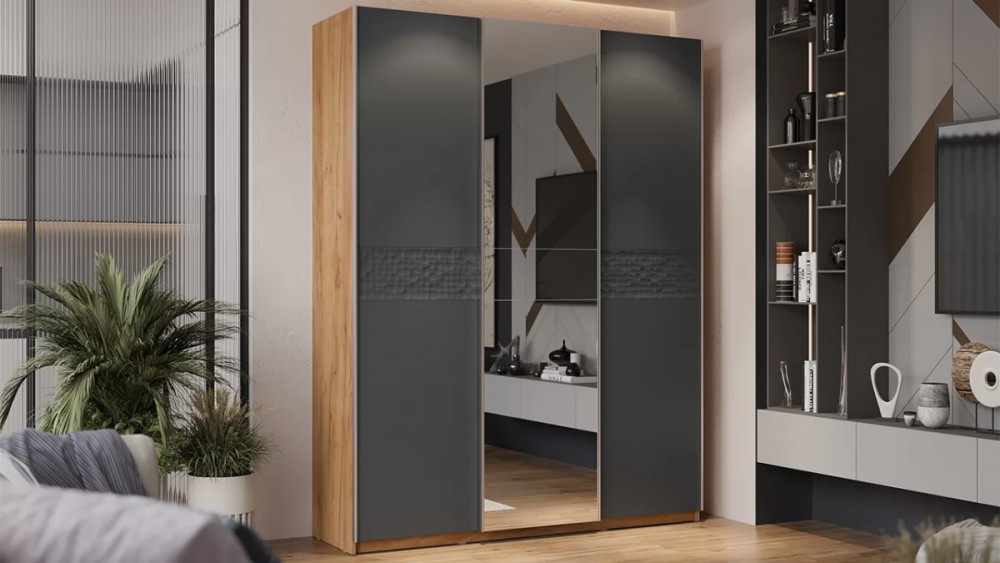 Шкаф-купе с 3 глухими дверями «Оскар Скания» Ручка черная, Кашемир, Дуб тортугга