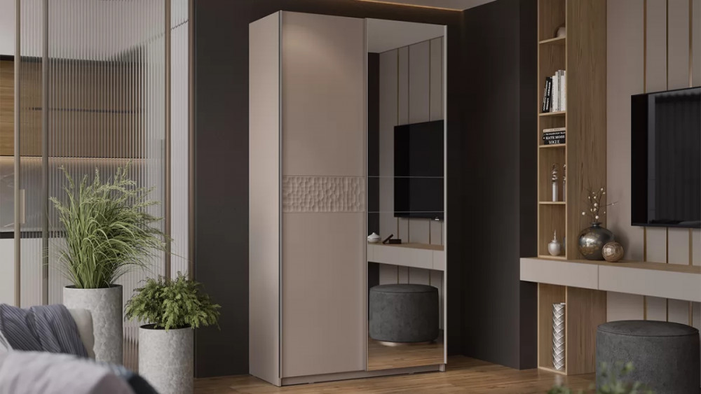 Серия шкафов-купе «Оскар Скания» Ручка серебро, Кашемир, Кашемир сатин