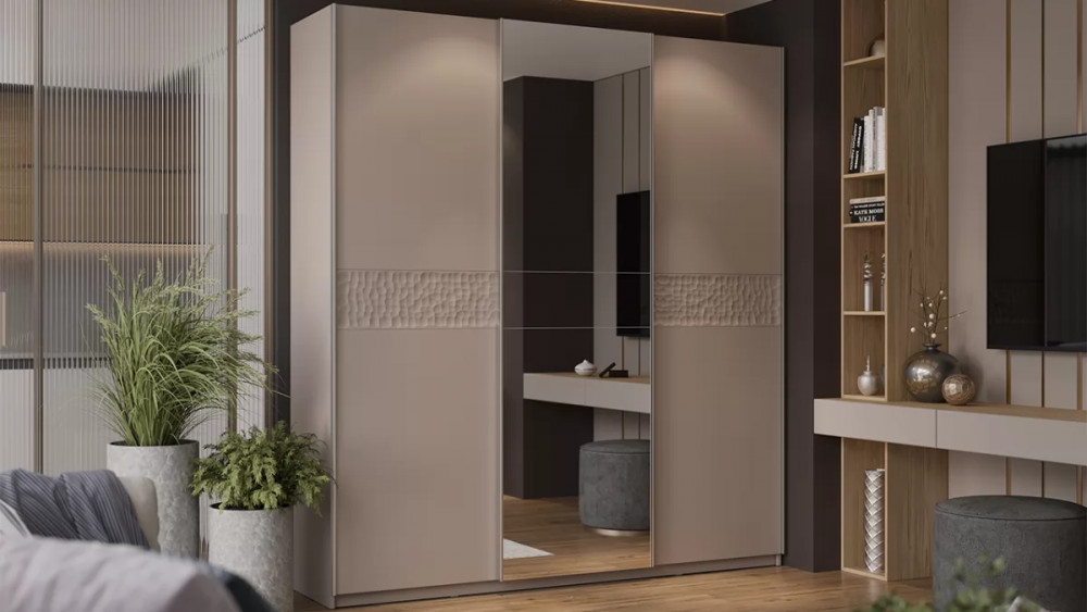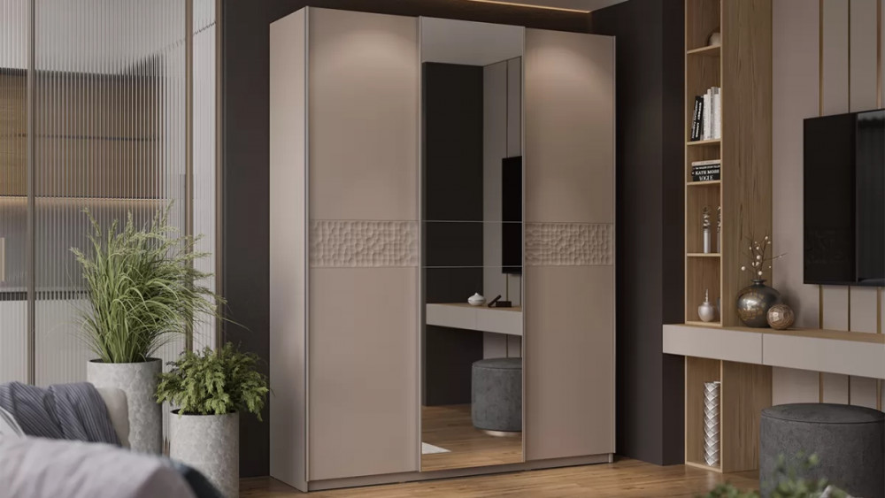 Шкаф-купе с 3 глухими дверями «Оскар Скания» Ручка серебро, Кашемир, Кашемир сатин
