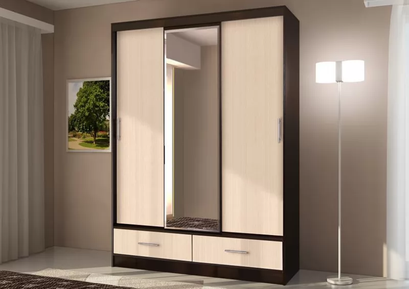 Шкаф-купе 009, трехдверный, с ящиками, венге /дуб белфорт Диал