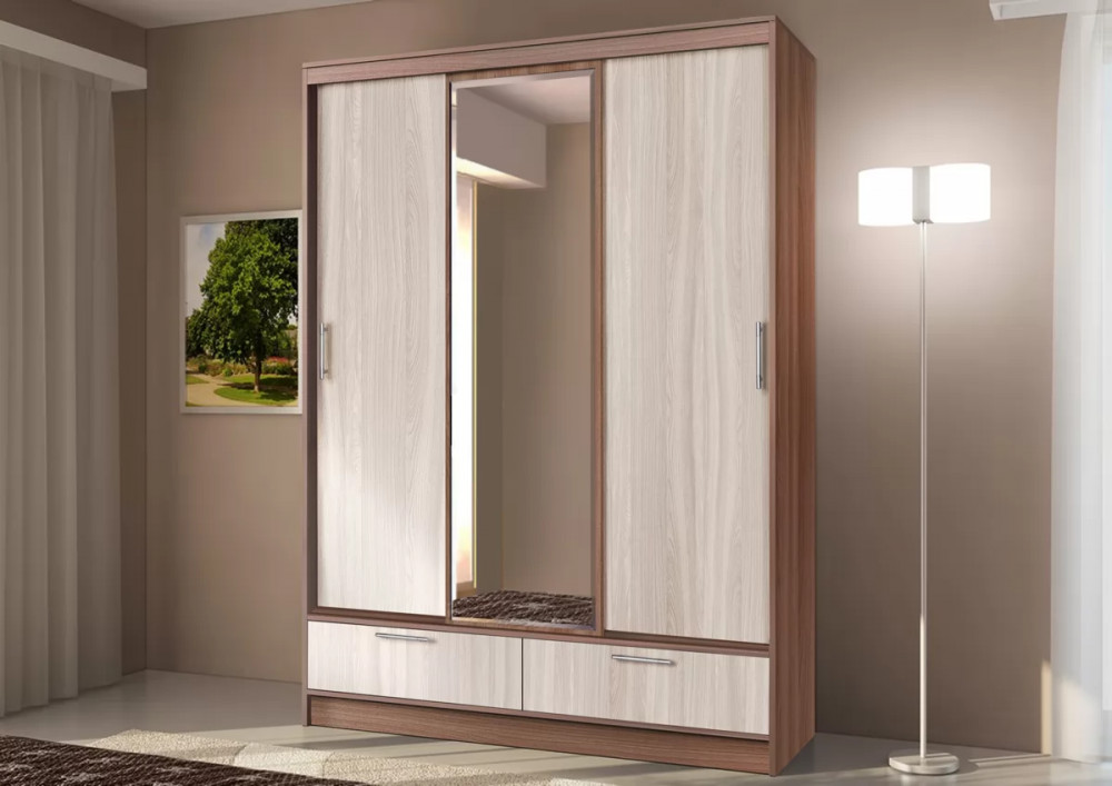 Шкаф-купе 009, трехдверный, с ящиками, венге /дуб белфорт Диал