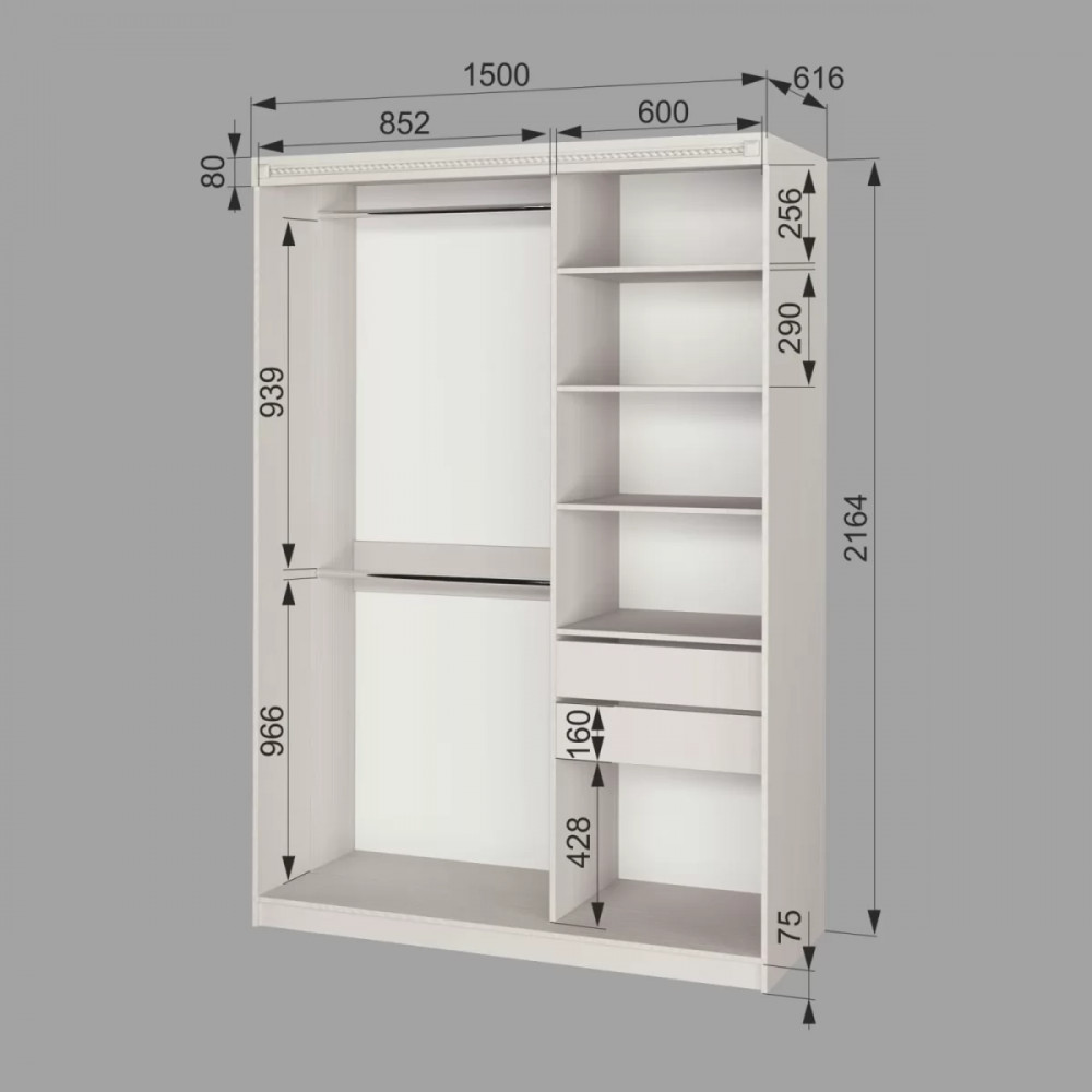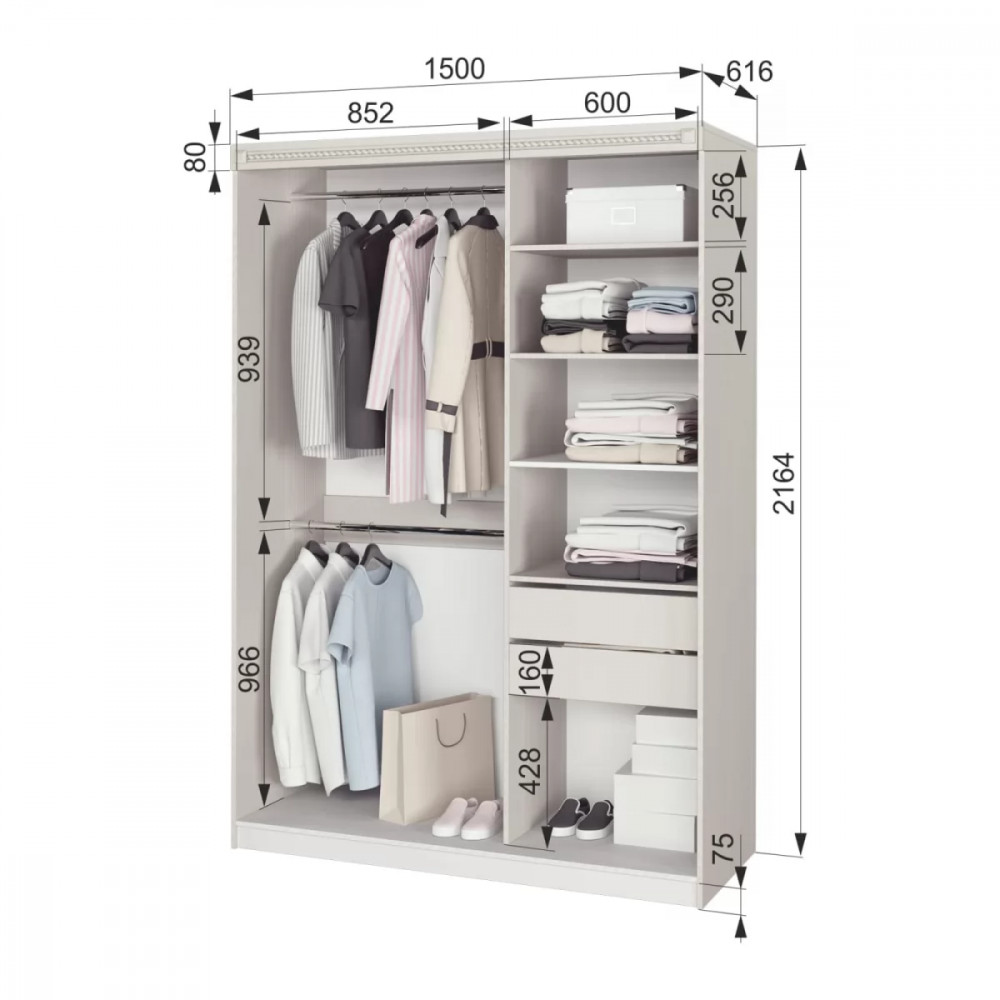 Размер: (Ш*В*Г) 1500*2164*616